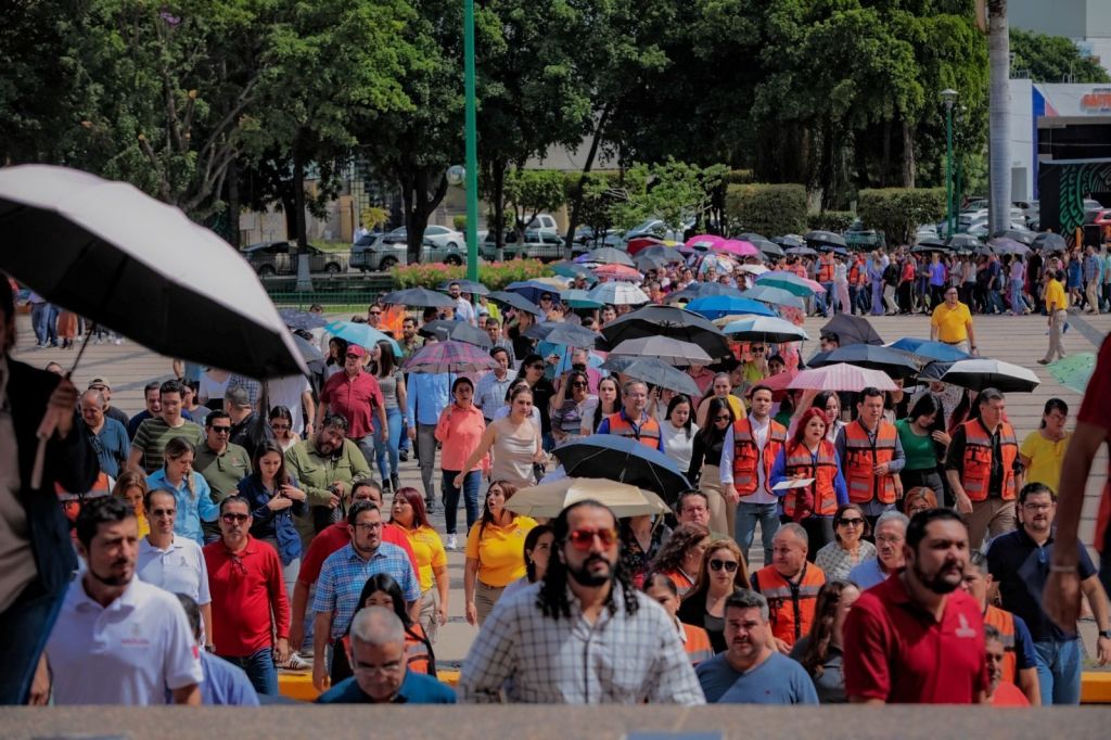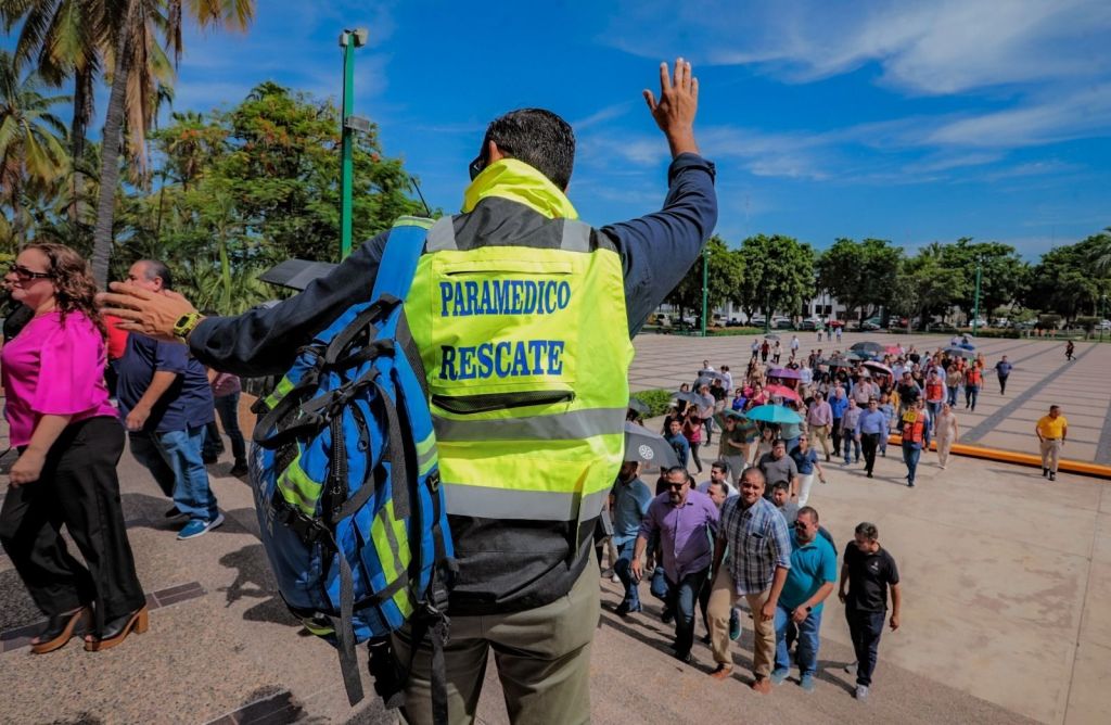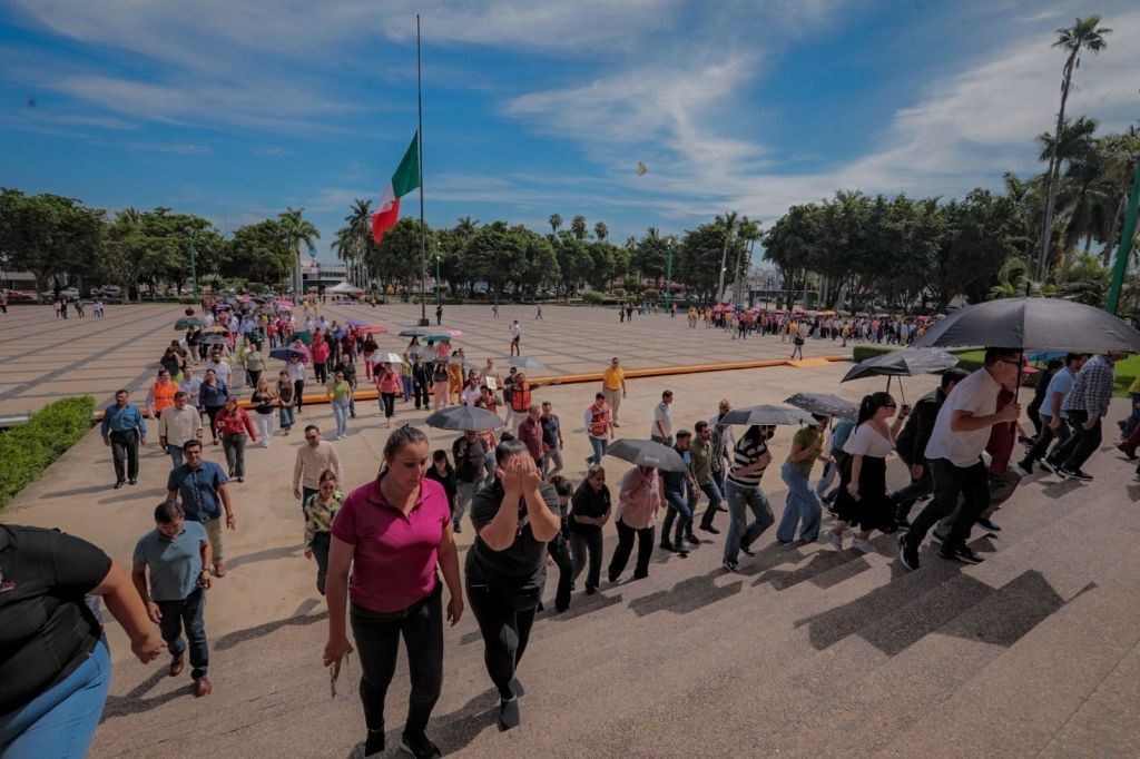 Culiacán, Sinaloa, 19 de septiembre del 2024.- Por segundo año consecutivo se realizó un simulacro de evacuación de Palacio de Gobierno, coordinado por el Instituto Estatal de Protección Civil, el cual resultó todo un éxito, pues se mejoró el tiempo de reacción con respecto al año pasado, al pasar de 8 minutos 29 segundos a un récord de 7 minutos 20 segundos, tiempo en el que más de 2 mil 500 personas fueron evacuadas de manera ordenada hacia las zonas de seguridad previamente establecidas en la explanada principal donde se encuentra la bandera nacional.