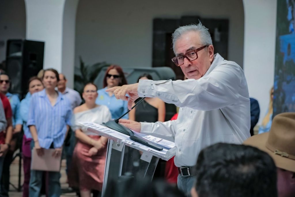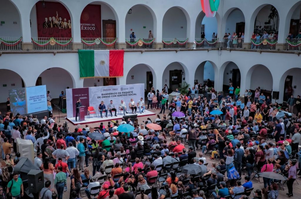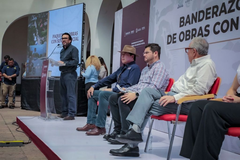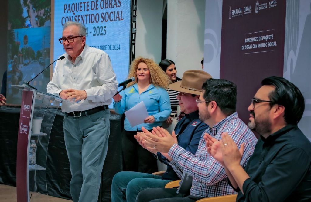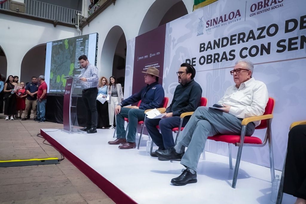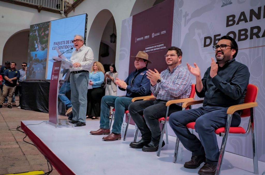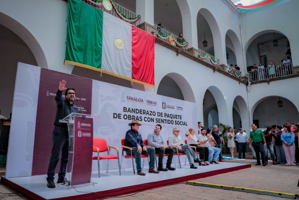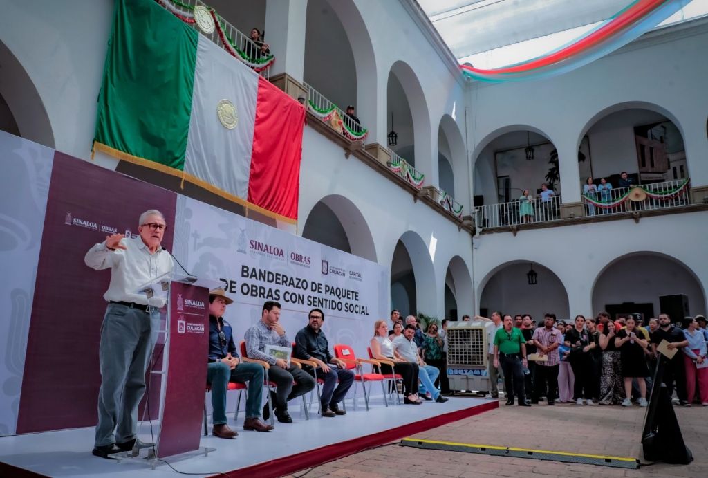 Desde el patio central del Ayuntamiento de Culiacán, y acompañado también por el secretario de Obras Públicas, Raúl Francisco Montero Zamudio, el mandatario estatal dio el simbólico banderazo de inicio de estos trabajos, que vendrán a resolver un problema de vialidad en todas esas colonias que carecen de calles pavimentadas, y además con la aplicación de esta millonaria inversión se moverá la economía de Culiacán.