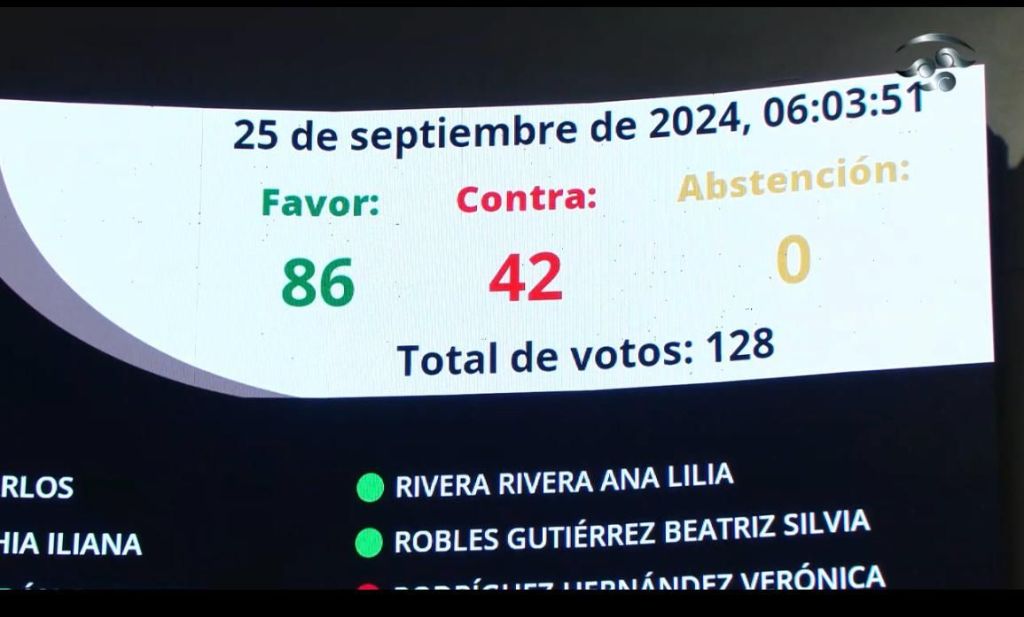 CDMX; 25, septiembre de 2024.- El Plan C avanza. A las 6:03 am (hora del centro del país), el Senado mexicano tras la discusión del dictamen, con 86 votos favor y 42 en contra, aprobaron la *Reforma constitucional a la Guardia Nacional*, para dotar al Estado mexicano de una fuerza de seguridad pública disciplinada y profesional que brindará mayor estabilidad al pueblo mexicano.