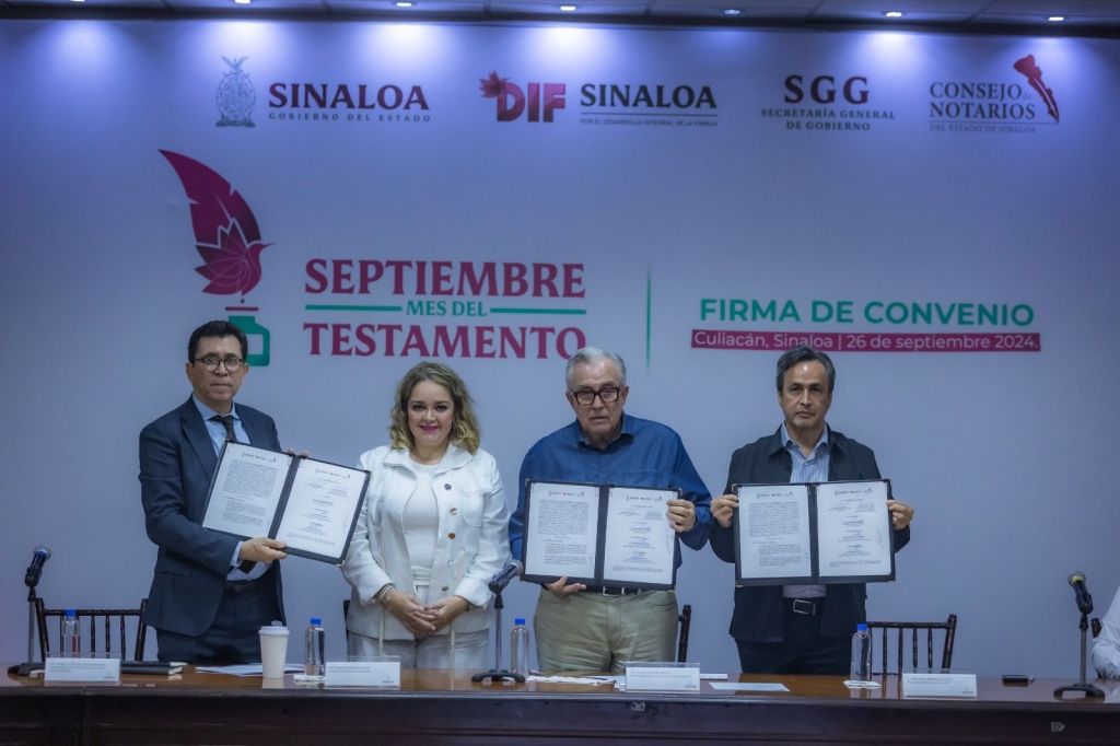 La firma de este convenio de colaboración estuvo a cargo del gobernador Rocha, de la presidenta del Sistema DIF Sinaloa, Eneyda Rocha Ruiz; y del vicepresidente del Consejo de Notarios del Estado de Sinaloa, Marco César García Bueno, en representación del presidente del mismo, Jorge Julián Chávez Murillo, y dicho acuerdo consiste en el compromiso de los notarios públicos de cobrar a la población mil pesos por la elaboración de un testamento, durante el periodo que dura esta campaña, que en el caso de Sinaloa, no se limita sólo a septiembre, sino que se extiende el resto del año, hasta el 31 de diciembre.