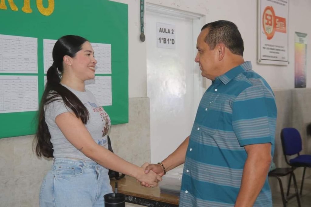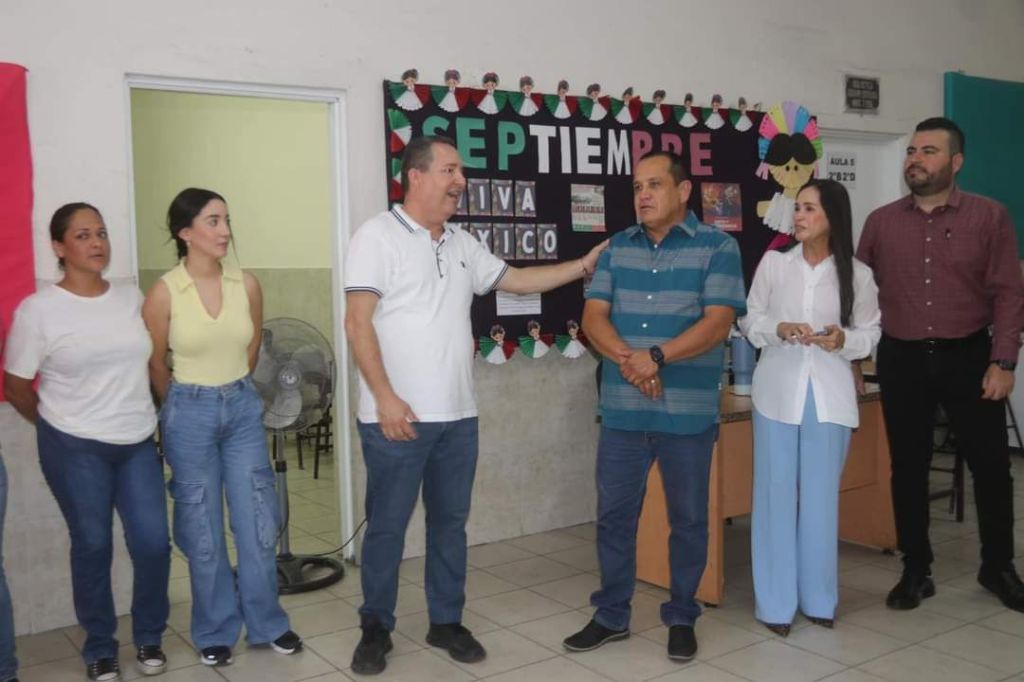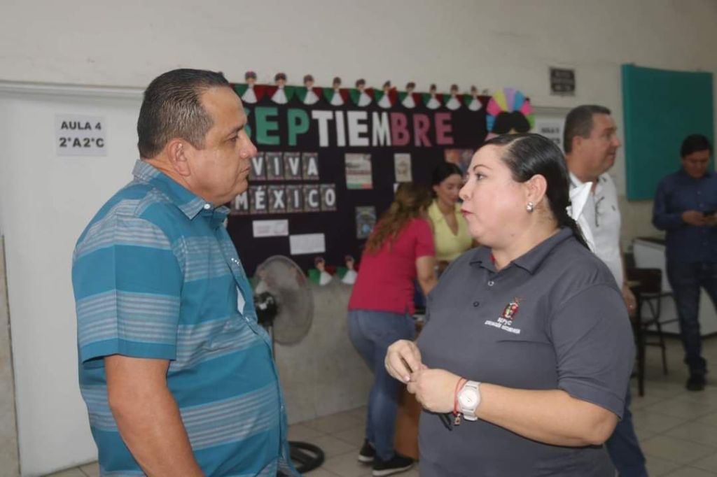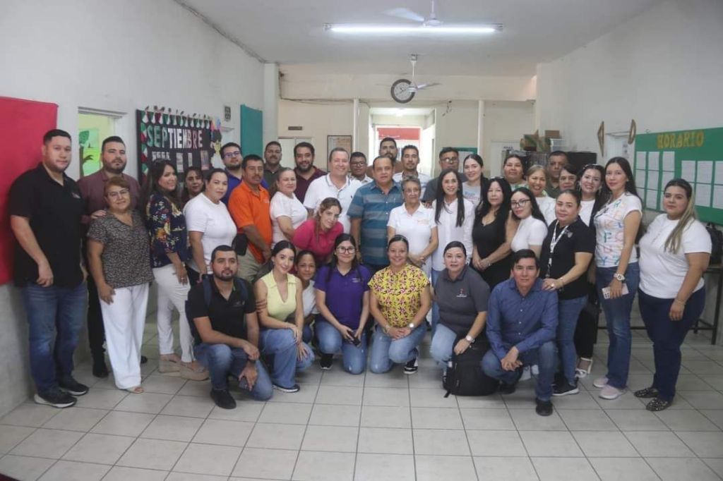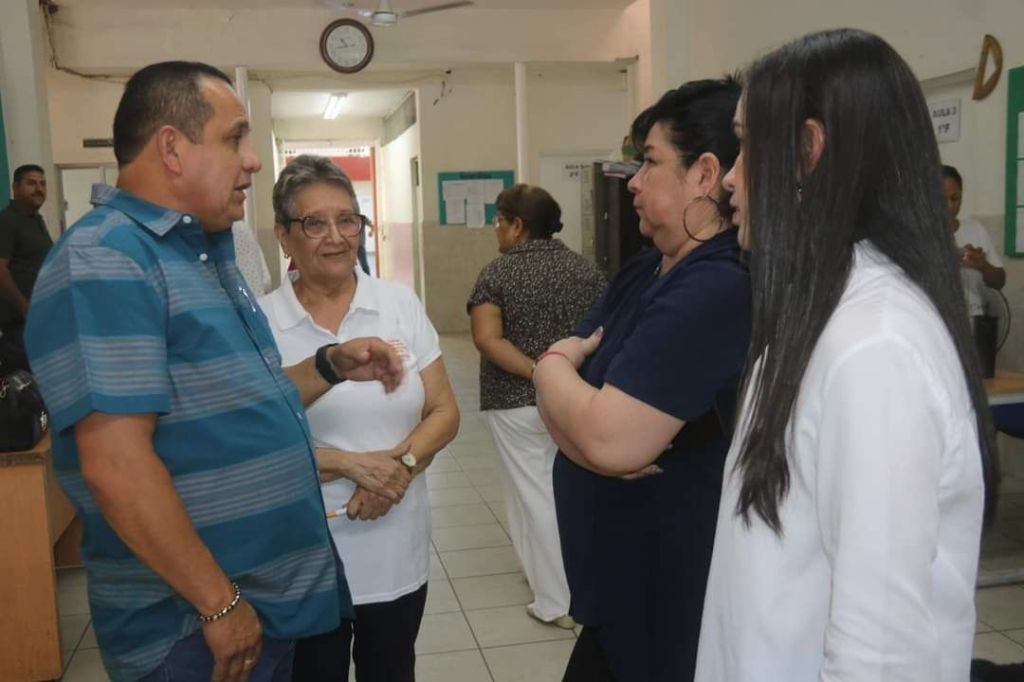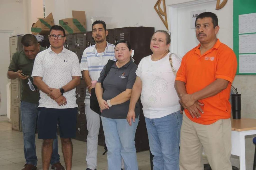 Acompañaron al dirigente la supervisora de la zona escolar 004 de Secundaria, Marisa Becerra Camacho; el Director Octavio López Chávez; y el Delegado de la D-II-2, Fernando Meza Avitia.