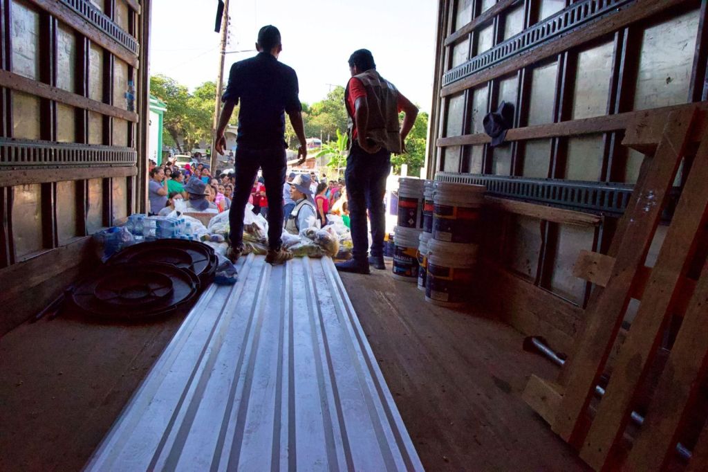 La jornada incluyó la distribución de 160 despensas, 60 Laminas, 30 Impermeabilizantes, 30 Cubetas de impermeabilizantes,10 Abanicos, 5 Tinacos, 250 Galones de Agua y 4 costales de alimento para perros, por parte de la brigada de SEBIDES, siempre dedicada y comprometida en su labor.