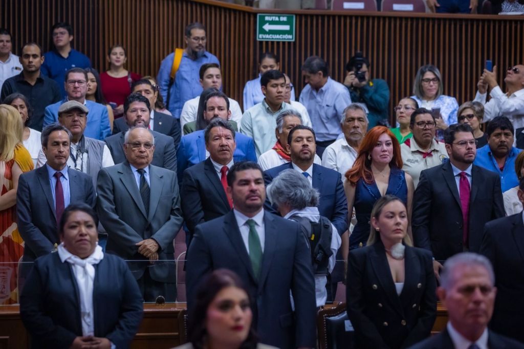 Rocha Moya presenció los honores a la bandera y el discurso de instalación para el período 2024 – 2027, al igual que decenas de funcionarios estatales, Presidentes Municipales y líderes de sector, quienes felicitaron ampliamente a los representantes populares.