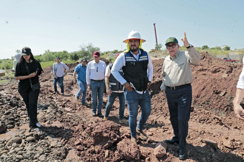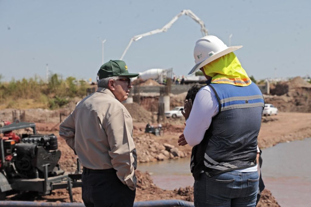 Culiacán, Sinaloa, a 12 de Octubre de 2024.- Concebida con el propósito de mejorar la circulación vehicular y la conectividad de la zona norponiente de Culiacán, la construcción del puente vehicular sobre Río Humaya entre Boulevard Rotarismo y Boulevard Enrique Sánchez Alonso es una obra que complementará el desarrollo del sector norte, misma que fue supervisada la mañana de este sábado por el Gobernador Rubén Rocha Moya, constatando que avanza a buen ritmo.
