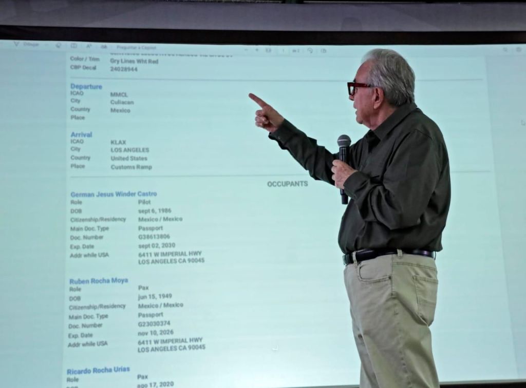«Esto es donde se registra el vuelo, el servicio del vuelo, a donde salimos, cuando salimos, a que horas, estos son los datos del vuelo, donde llegamos, por cierto, que este reporte esta entregado a la FGR, es decir, a la FGR no le dije, me fui el 25 a tales horas, no, le entregue un documento que comprueba que es oficial y que es expedido por CBP, el sello oficial de la dependencia», precisó el Gobernador.