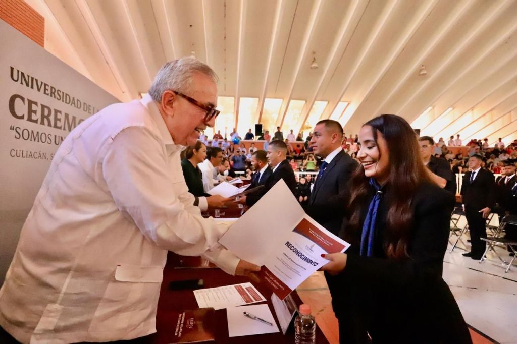 Acompañaron al gobernador Rocha en esta ceremonia, además del rector de la UNIPOL, Oscar Fidel González Mendívil, la fiscal general del Estado, Claudia Zulema Sánchez Kondo; el presidente municipal de Culiacán, Juan de Dios Gámez Mendívil; el presidente municipal de Guasave, Martín Ahumada Quintero; el secretario ejecutivo del Sistema Estatal de Seguridad Pública, Ricardo Jenny del Rincón; el subsecretario de Seguridad Pública, Prevención y Reinserción Social, Leoncio Pedro García Alatorre; el coordinador general del Consejo Estatal de Seguridad Pública, Miguel Calderón Quevedo; el director del Centro de Estudios de la Criminalidad y Violencia, Jaime Palacios Barreda; y el director académico de la UNIPOL, Carlos Báez Montes.