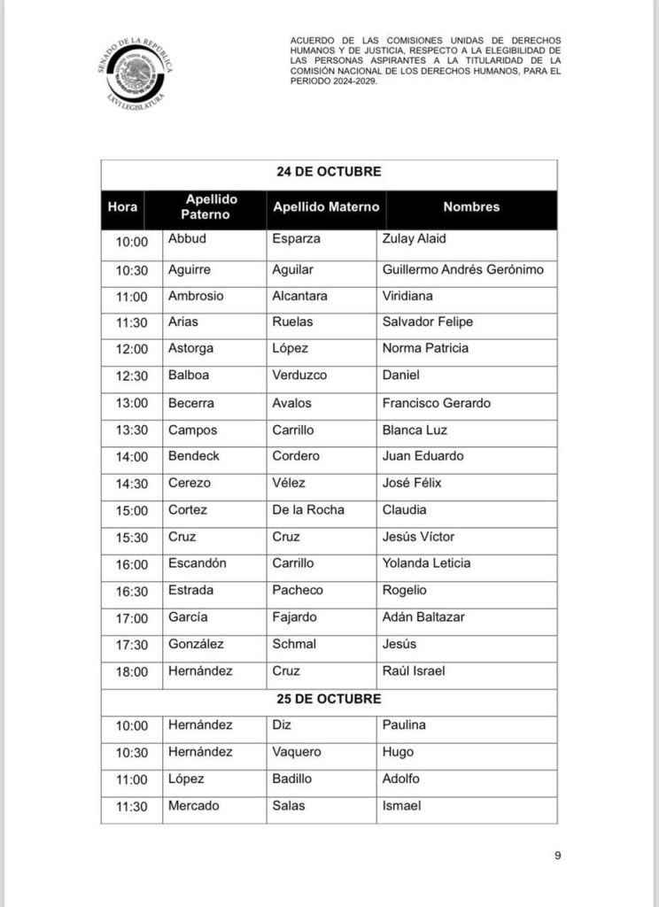 Se comparte lista de 48 aspirantes que cumplen con los requisitos de elegibilidad para la titularidad de CNDH.
