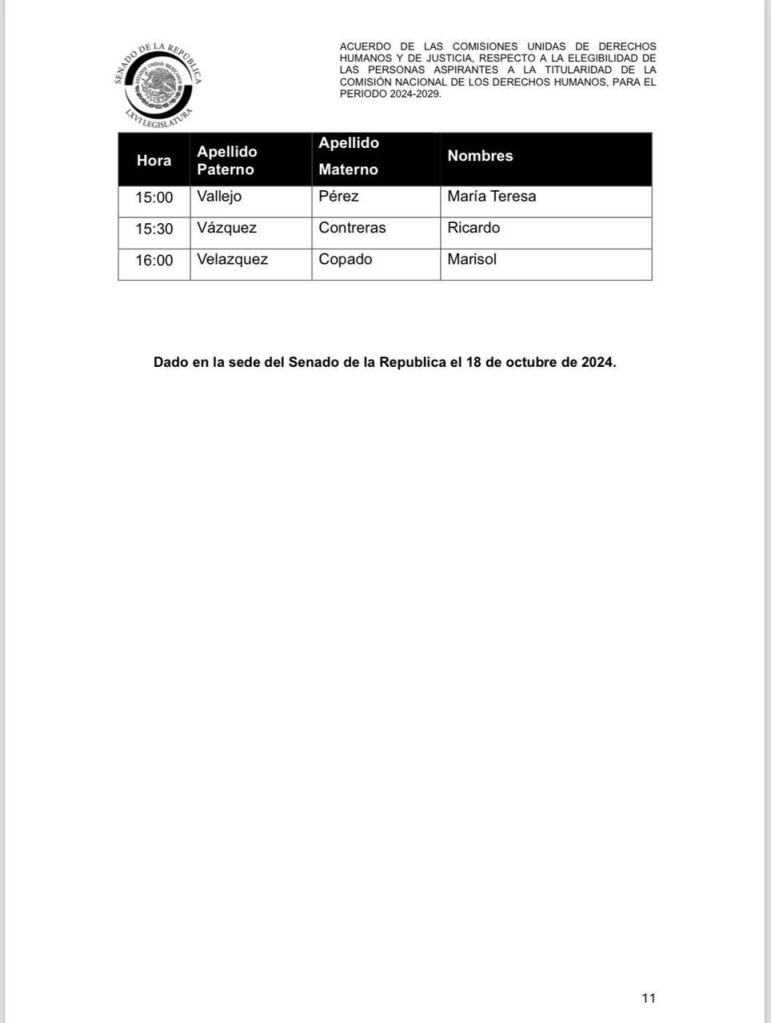 En reunión de comisiones, senadores aprueban el listado con las 48 personas aspirantes a ocupar la titularidad de la (CNDH).