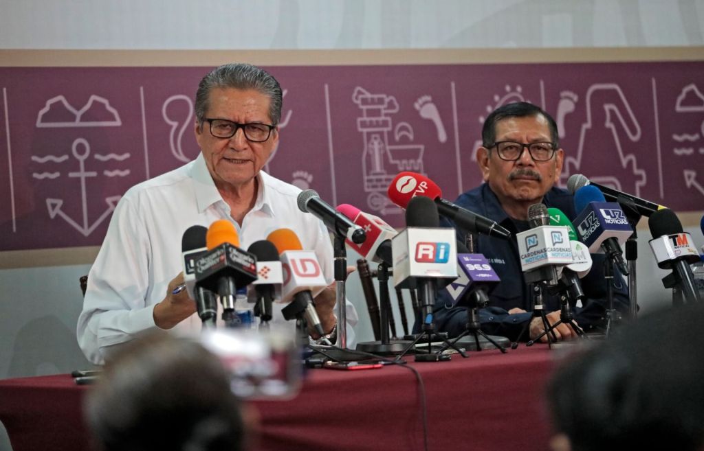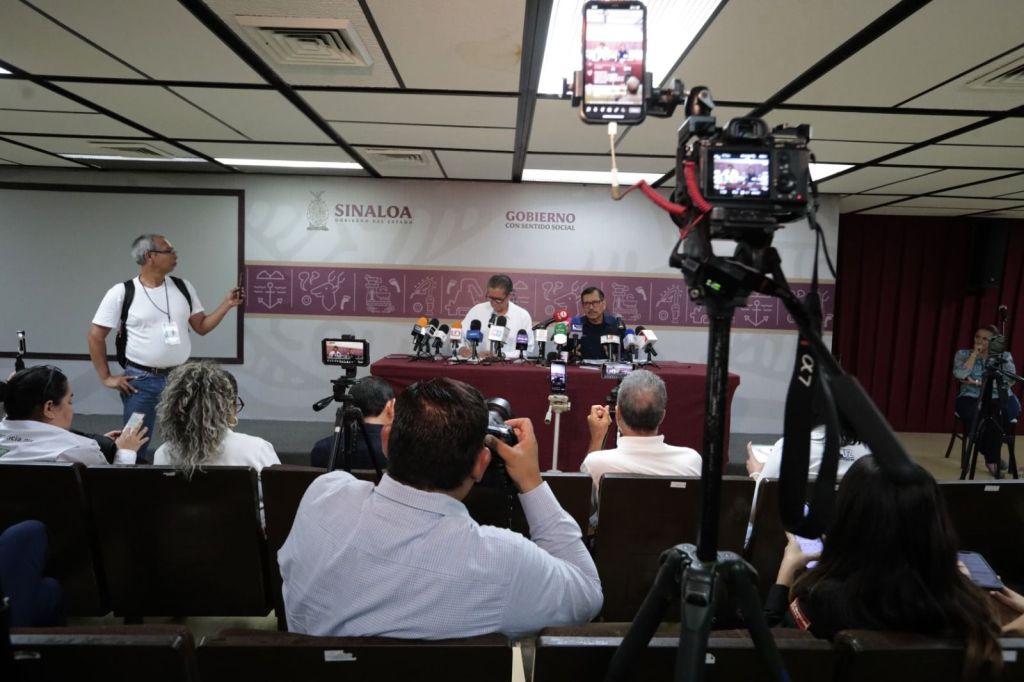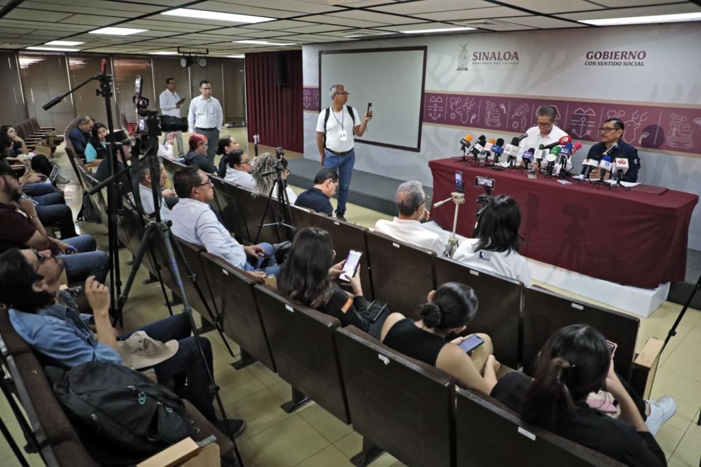 Culiacán, Sinaloa 22 de octubre de 2024.- En conferencia de prensa el Secretario General de Gobierno Feliciano Castro Meléndrez, acompañado del Gral. Gerardo Mérida Sánchez, Secretario de Seguridad Pública, reiteraron el compromiso de Gobierno del Estado de mantener informada a la sociedad sinaloense sobre las acciones y el quehacer de las autoridades de los tres órdenes de gobierno, en el proceso de garantizar seguridad plena a la población y la reconstrucción del tejido social.