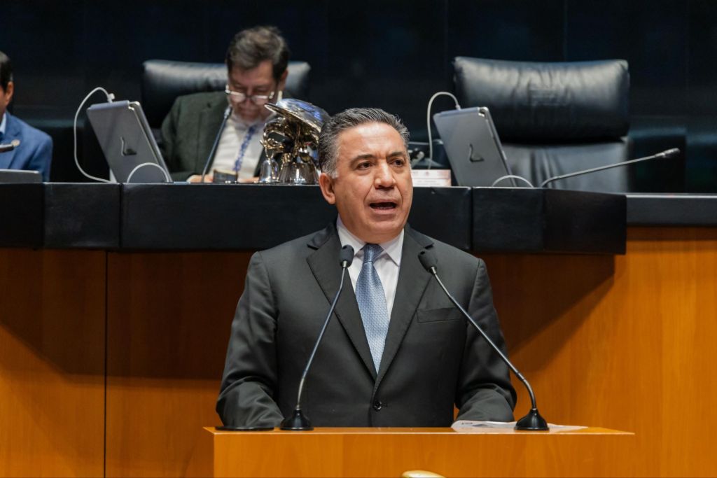 El senador sinaloense Enrique Inzunza durante su participación en el pleno, destacó que las modificaciones propuestas a los artículos 4° y 27 de la Constitución “representa un paso gigantesco” para definir el tipo de Estado que se busca en México: uno donde los derechos de las personas, especialmente de aquellas que sufren de carencias, por fin sean reivindicados al incluirlos en la Carta Magna.