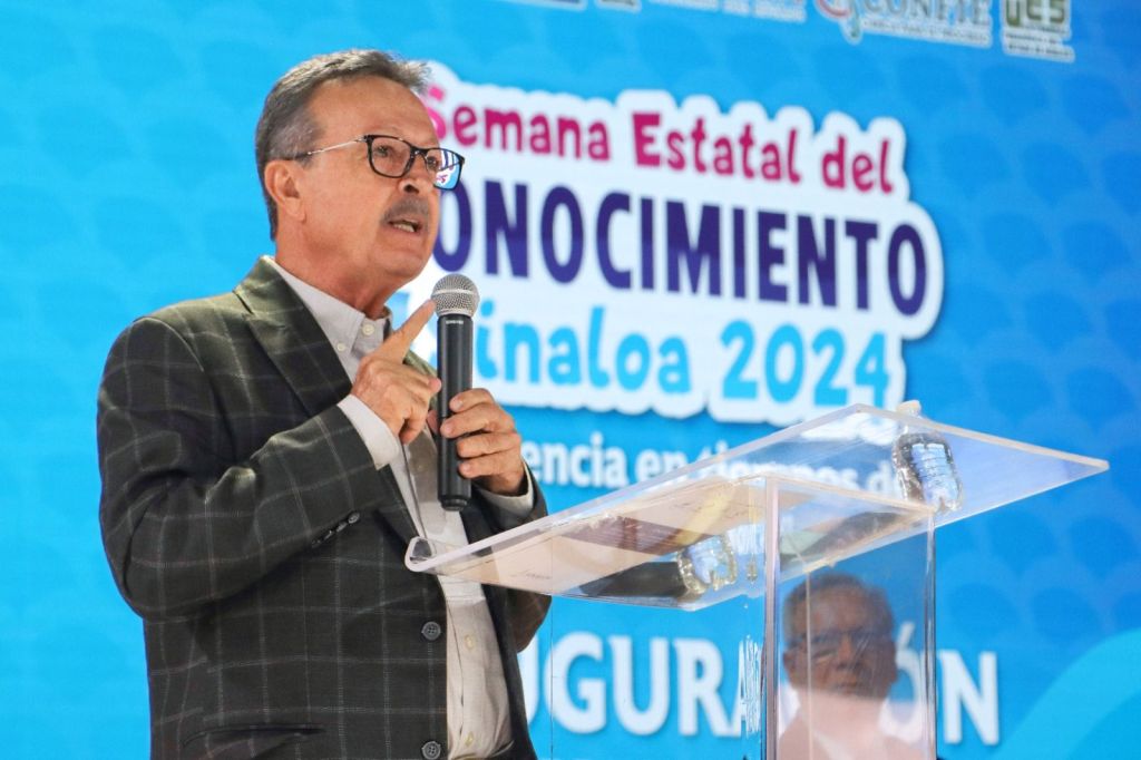 “Aquí en Sinaloa sí se apoya la ciencia, aquí en Sinaloa sí se visualiza un estado con ciencia y eso se ve precisamente porque es un estado próspero, porque es un estado que tiene pesca, ganadería, acuacultura y agricultura, y somos líderes en la producción de todos estos sectores primarios, que son los principales en producir alimentos”, afirmó ante 300 invitados especiales, grupos escolares, integrantes del Programa TalentoS y público en general reunidos en el Auditorio de Rectoría de la Universidad Pedagógica del Estado de Sinaloa, así como 930 personas conectadas a través de las redes sociales.