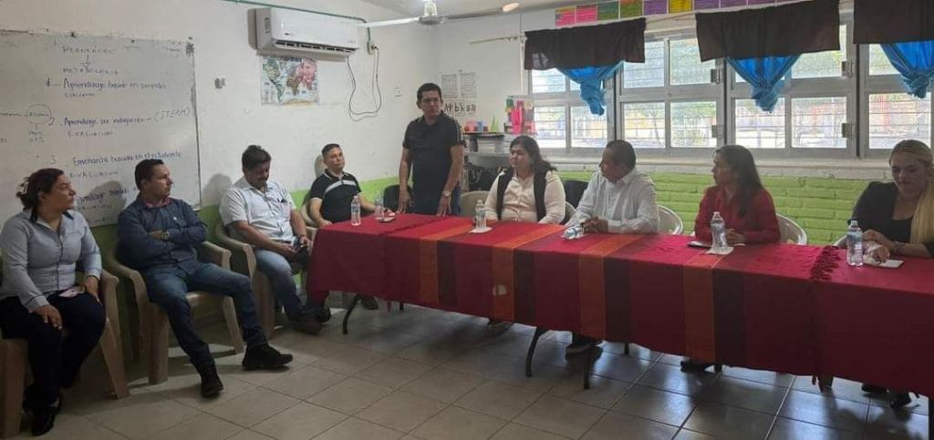 Presentes en la reunión, la Jefa de Sector III, Gladys López Fuentes, la Supervisora de la Zona 015, Nereyda Hernández López, los Coordinadores de la región; el Dirigente sindical, José Antonio León Rendón e integrantes de la Directiva Seccional Sindical.