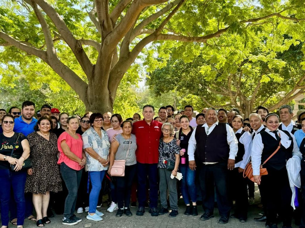 Debajo de un frondoso árbol de Huanacaxtle, conversó con culichis sobre la importancia de consolidar en México el estado Constitucional de Bienestar que impulsa la presidenta Claudia Sheinbaum Pardo.