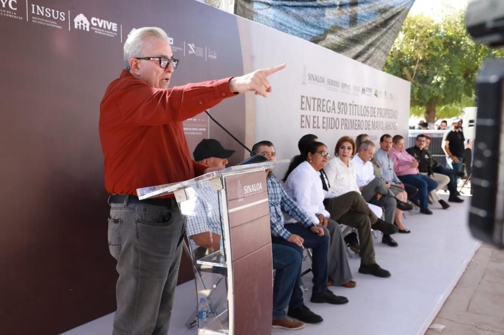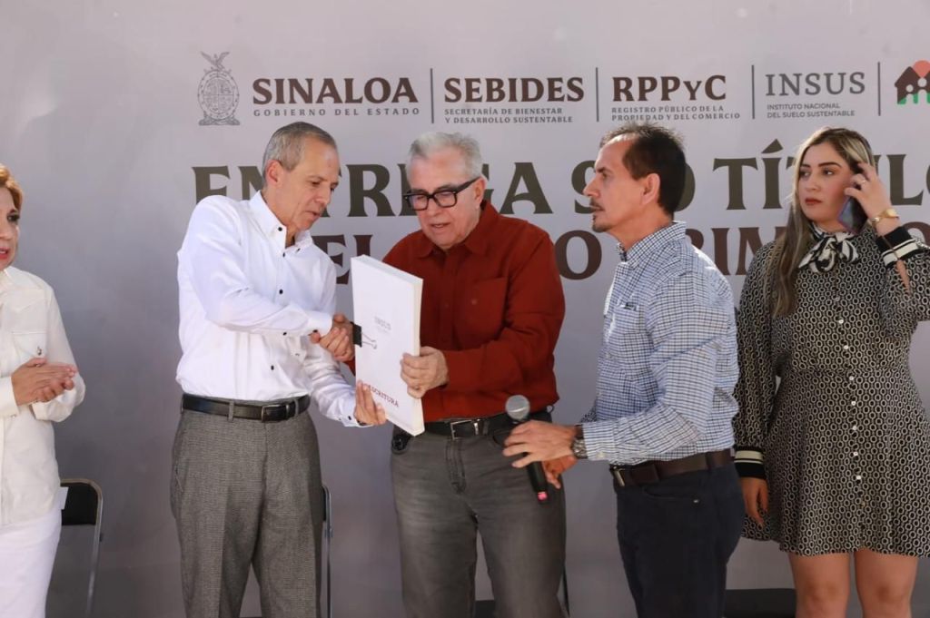 El mandatario estatal señaló que gracias a las dependencias que conforman la mesa de certeza jurídica se comenzaron a otorgar títulos de propiedad a cientos de sinaloenses, de manera gratuita y con todas las legalidades requeridas. «Certeza es sinónimo de cierto, ustedes ya pueden decir: es cierto que este terreno es mío, porque aquí tengo el papel que lo acredita. Eso se llama certeza jurídica, ¿Por qué jurídica? Porque es cierto de acuerdo con la ley» puntualizó el Ejecutivo, y agregó, que en coordinación con el INSUS, se sigue trabajando para seguir entregando títulos de propiedad no solo en Ahome, sino en todo el estado.