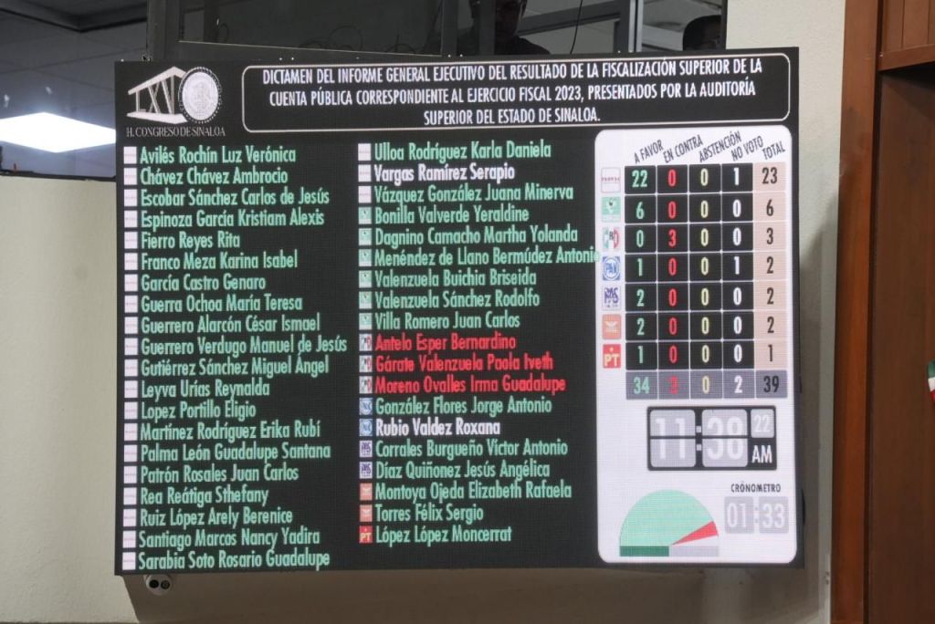 El dictamen del Informe General presentado por la ASE fue aprobado por la mayoría de los diputados y diputadas. Los integrantes de la bancada del PRI votaron en contra del documento.