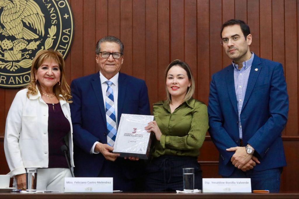 “Maestro Feliciano Castro Meléndrez, reciba nuestra bienvenida, y a través de usted, le expresamos al doctor Rubén Rocha Moya nuestro agradecimiento, y el compromiso con este ejercicio de rendición de cuentas; al gobernador, que es un aliado de las y los sinaloenses, cuenta con nuestro absoluto respaldo para salir avante de los desafíos que presenta nuestra entidad”, concluyó.