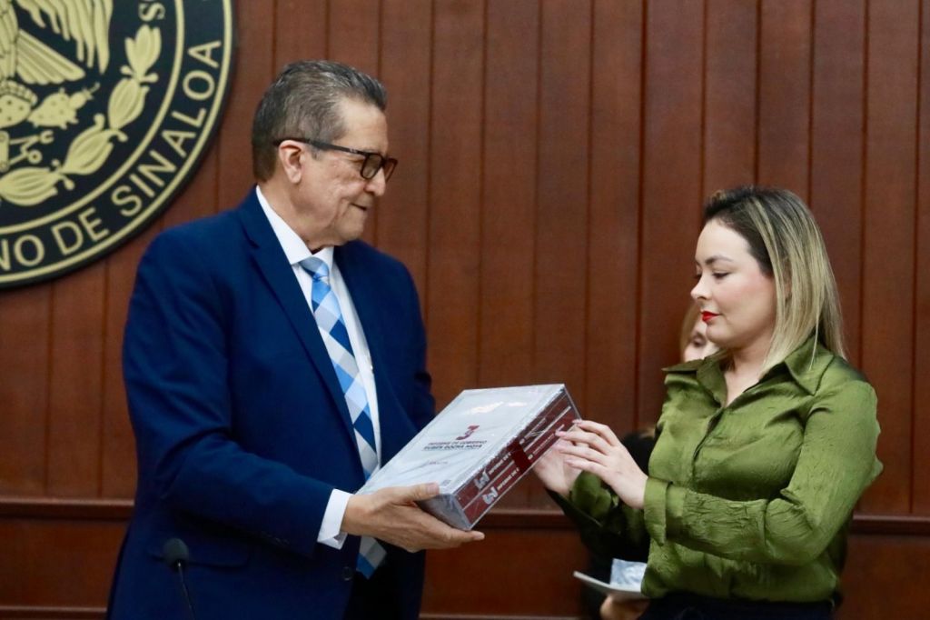 El secretario entregó a la presidenta de la Mesa Directiva, la diputada Yeraldine Bonilla Valverde, este documento que da cuenta del estado que guarda la administración pública estatal, correspondiente al tercer año de gobierno, esto para dar cabal cumplimiento al artículo 40 de la Constitución Política del Estado de Sinaloa, así como al artículo 9 de la Ley Orgánica del propio Congreso del Estado.