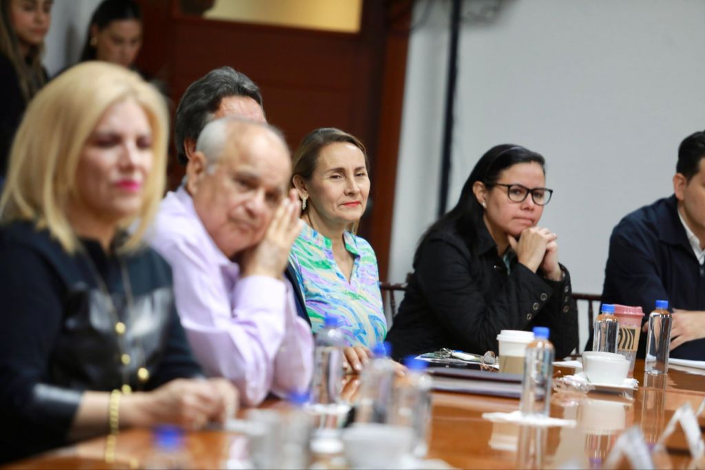 Acompañaron al gobernador Rocha en esta reunión, la presidenta del Sistema DIF Sinaloa, Eneyda Rocha Ruiz; el secretario de Administración y Finanzas, Joaquín Landeros Güicho; el secretario de Obras Públicas, Raúl Francisco Montero Zamudio; la secretaria de Bienestar y Desarrollo Sustentable, María Inés Pérez Corral; el secretario de Economía, Javier Gaxiola Coppel; la secretaria de las Mujeres, Ana Chiquete Elizalde; la secretaria de Pesca y Acuacultura, Flor Emilia Guerra Mena; el secretario de Salud, Cuitláhuac González Galindo; la secretaria de Transparencia y Rendición de Cuentas, María Guadalupe Ramírez Zepeda; la secretaria de Educación Pública y Cultura, Gloria Himelda Félix Niebla; y el subsecretario de Gobierno, Rodolfo Jiménez López.