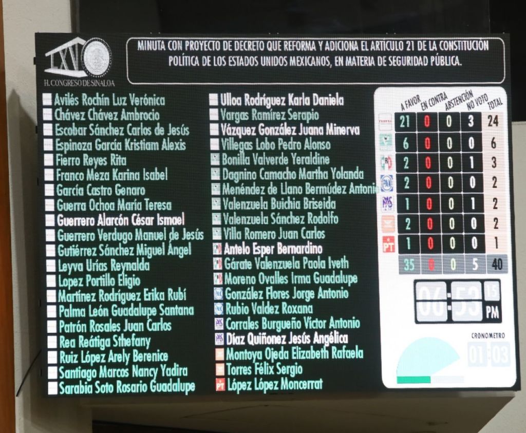 Culiacán, Sinaloa. A 21 de noviembre de 2024.- El Congreso del Estado aprobó por unanimidad minuta enviada por la Cámara de Diputados Federal.