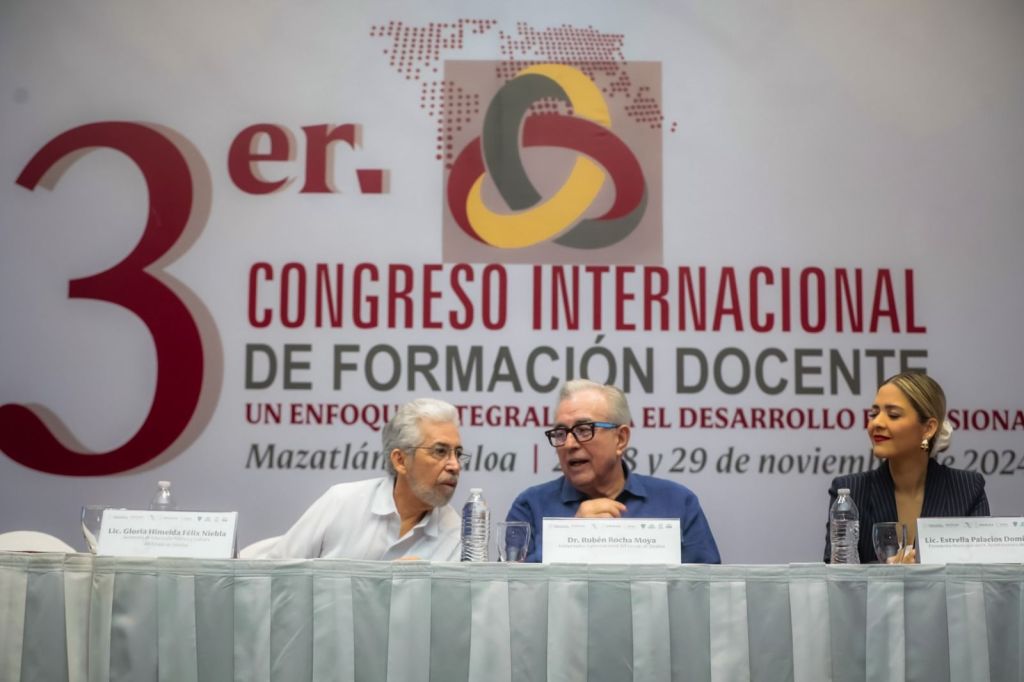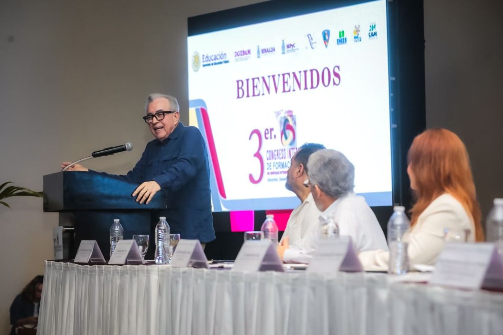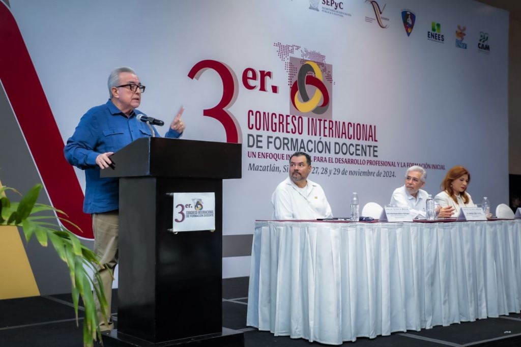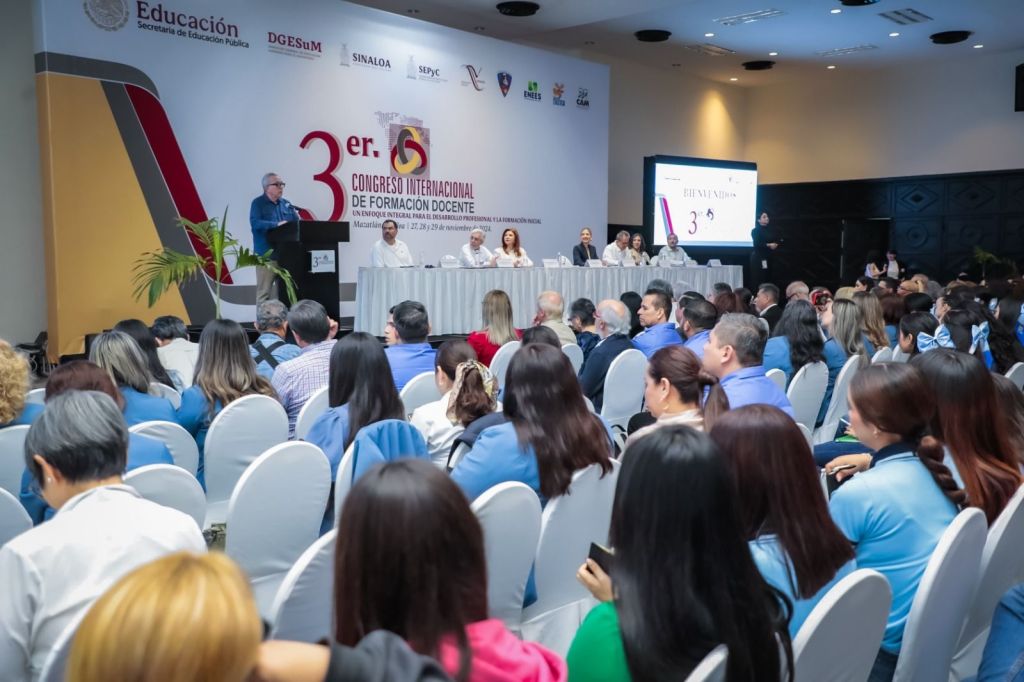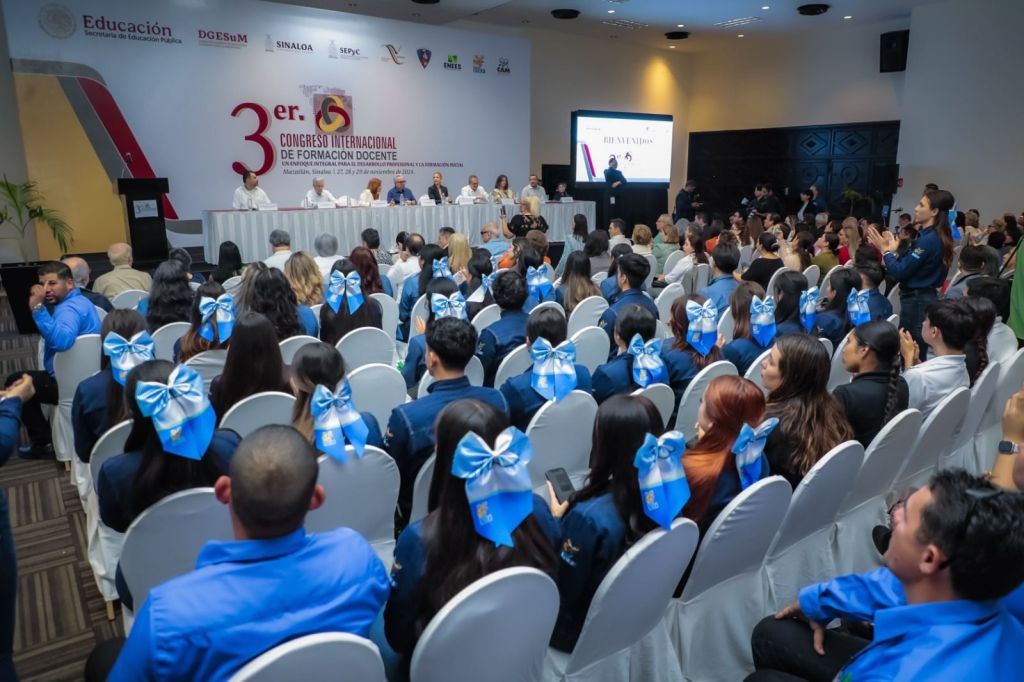 El gobernador del estado inauguró en Mazatlán el Tercer Congreso Internacional de Formación Docente, que congregó a alumnos de escuelas normales de distintos estados del país.