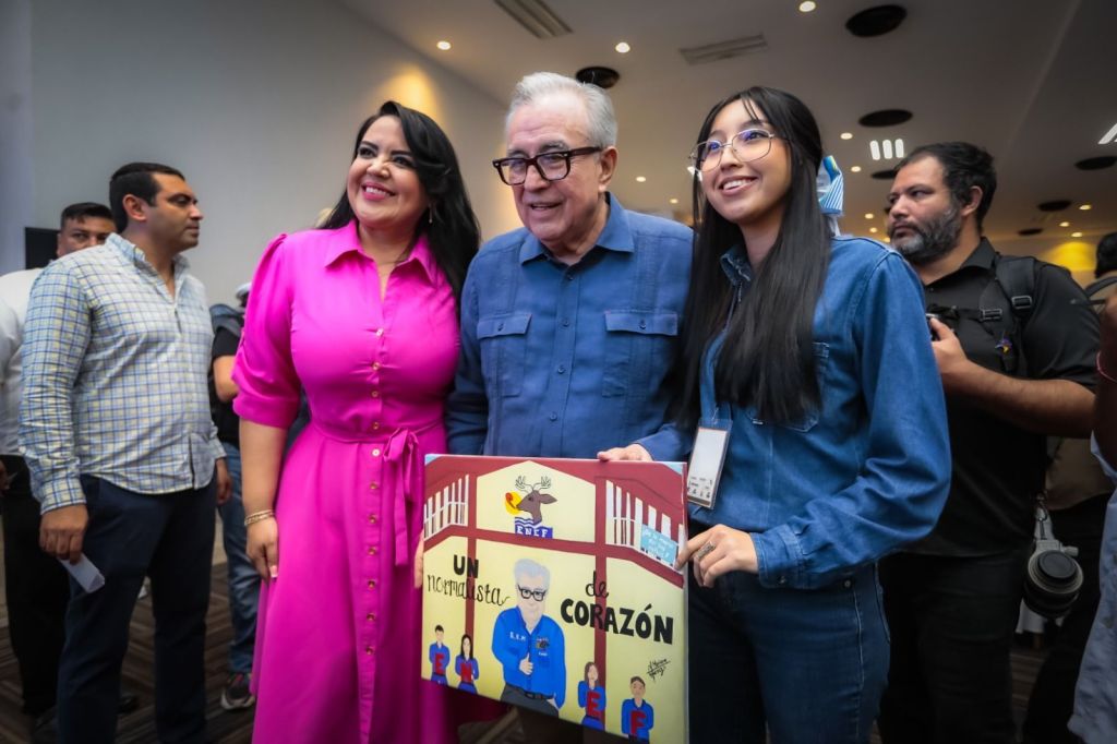 La secretaria de Educación también hizo un reconocimiento al gobernador Rubén Rocha Moya por su aportación a la educación, no sólo ahora en su carácter de mandatario estatal, sino en su etapa como senador de la República, siendo presidente de la Comisión de Educación, sino también en las diferentes facetas de su vida como académico, pues también tuvo el privilegio de ser rector de la Universidad Autónoma de Sinaloa.