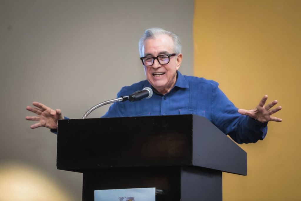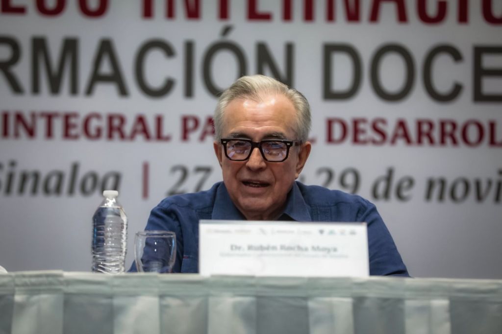 “Quiero reconocer a nuestro gobernador, el doctor Rubén Rocha Moya, que nos distingue esta mañana en este muy emblemático y significativo evento. Señor gobernador, la comunidad educativa conoce en usted su enorme visión y compromiso con la educación, pero también de manera personal le reconocemos el bagaje de conocimientos y de aportación que desde la academia ha otorgado en favor de las y los sinaloenses, y los mexicanos”, dijo.