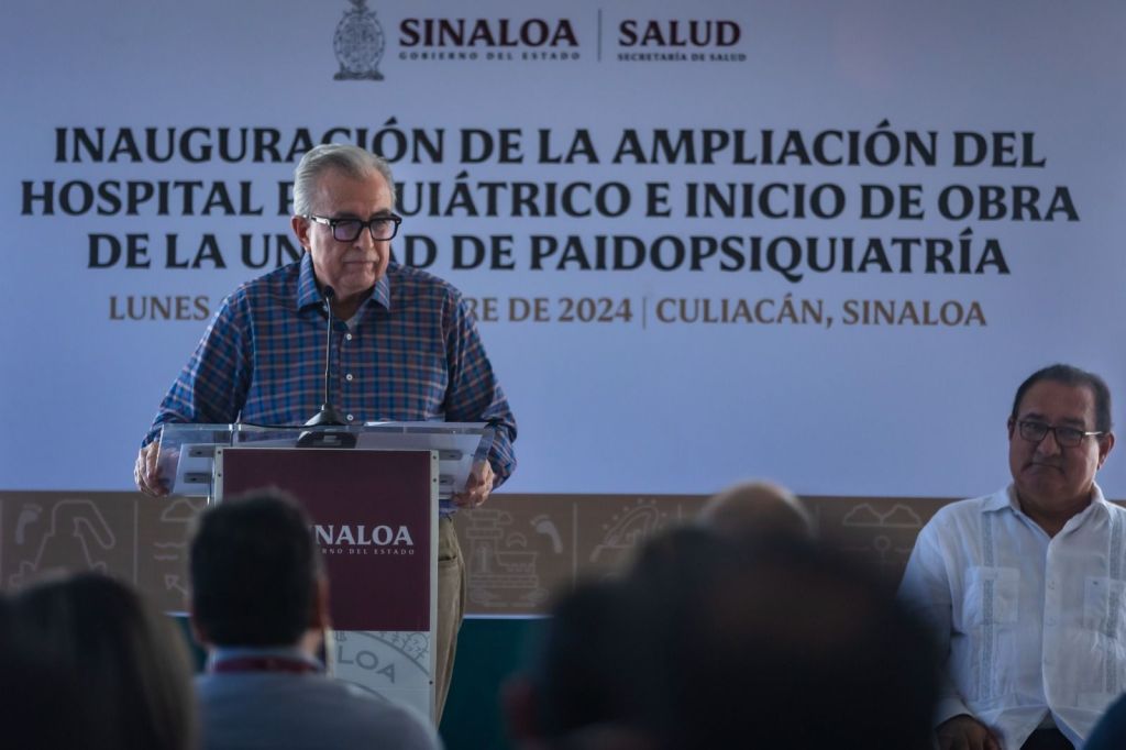 Por su parte, el Secretario de Salud Cuitláhuac González detalló, que, en el nuevo anexo de la planta hospitalaria, se invirtieron 6.8 millones de pesos en obra, equipamiento y mobiliario, pasando de 32 a 48 camas, lo que supone un incremento de 33% en su capacidad de atención, con respecto al número de camas con las que se contaba hasta ahora. Referente a la unidad de Paidopsiquiatría, expresó que representará un hito importante, ya que a nivel nacional solo se cuentan con dos hospitales que atienden la salud mental infantil, siendo la unidad de Culiacán la tercera en el país y la primera en el norte de México. Para la cual se invertirán dos millones de pesos. Cabe señalar que en Sinaloa existen 10 mil 292 niños menores de 14 años con un trastorno mental y dos mil niños con trastorno del espectro autista. La unidad contará con psiquiatras pediátricos, pediatras y psicólogos, además áreas de atención motriz y terapia grupal, consultorios e internamiento para atender a la niñez sinaloense.