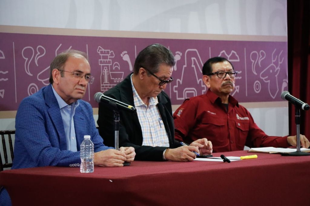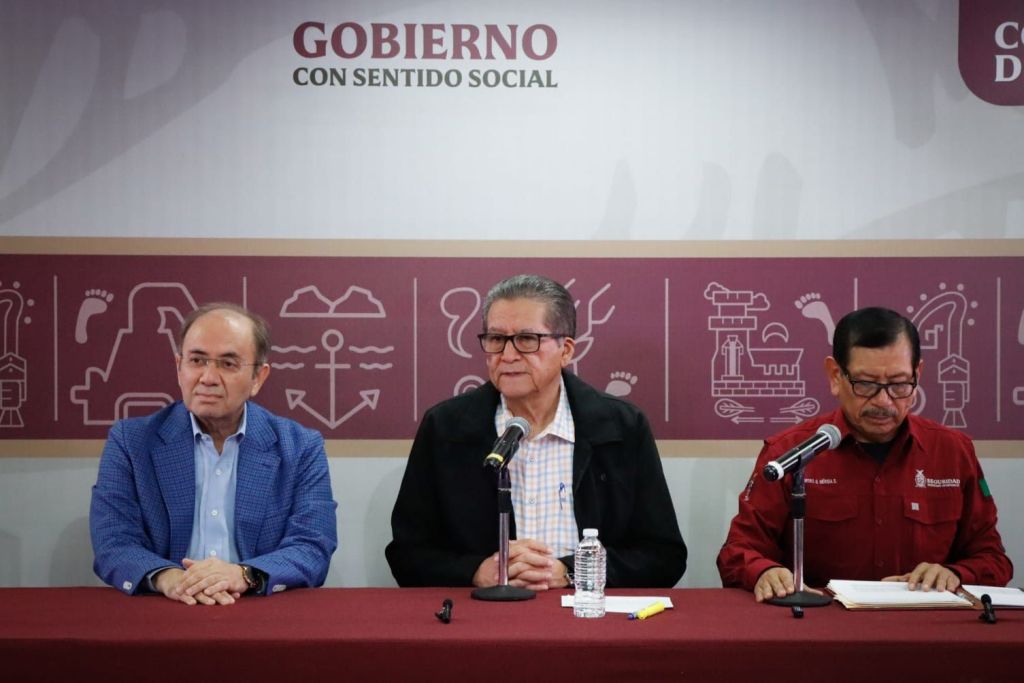 Culiacán, Sinaloa, a 4 de diciembre de 2024. – Durante la Conferencia de Prensa de la Vocería del Gobierno de Sinaloa, el director general de COBAES, Santiago Inzunza Cázares, acompañado por Feliciano Castro Meléndrez, vocero del Gobierno, y Gerardo Mérida Sánchez, secretario de Seguridad Pública, destacó las estrategias implementadas para mantener altos niveles de asistencia presencial en los planteles del Colegio de Bachilleres de Sinaloa.