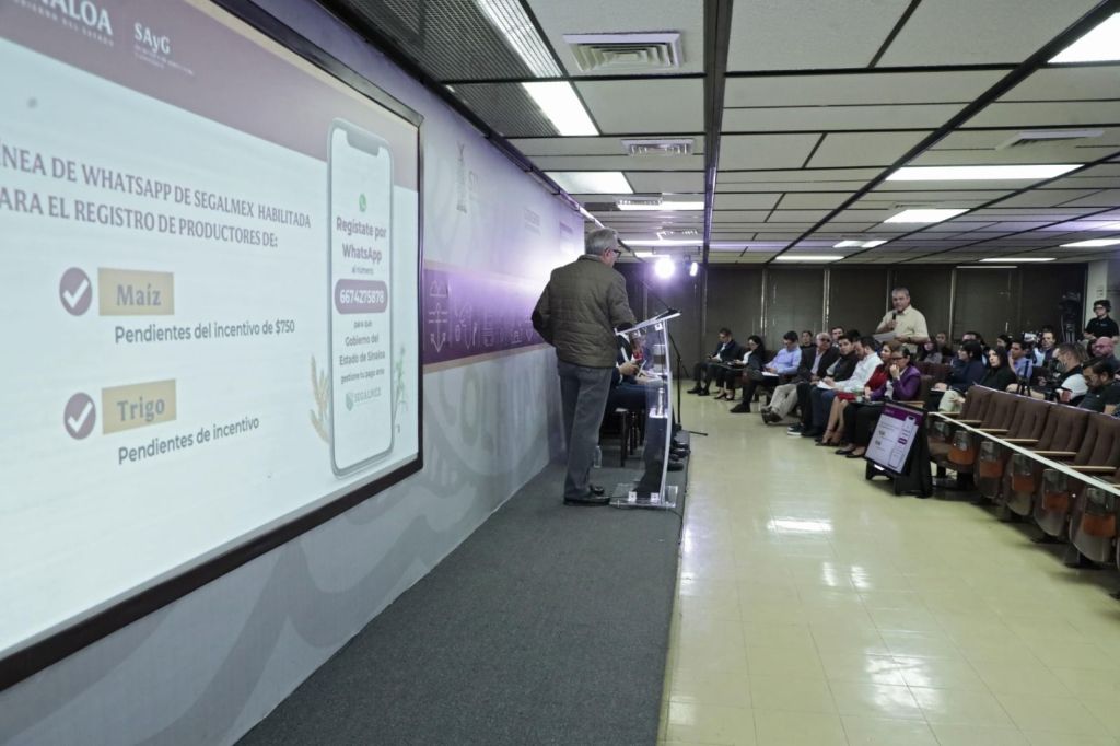 “También por instrucciones suyas, estamos habilitando un teléfono de atención para todos los productores de maíz que aún faltan por recibir su estímulo, tenemos una línea de WhastApp 667 427-58-78 directamente con SEGALMEX, habilitada por la Secretaría de Agricultura y Ganadería, para todos aquellos productores que estén pendientes del incentivo de 750 pesos, al igual que para los productores de trigo”, dijo.