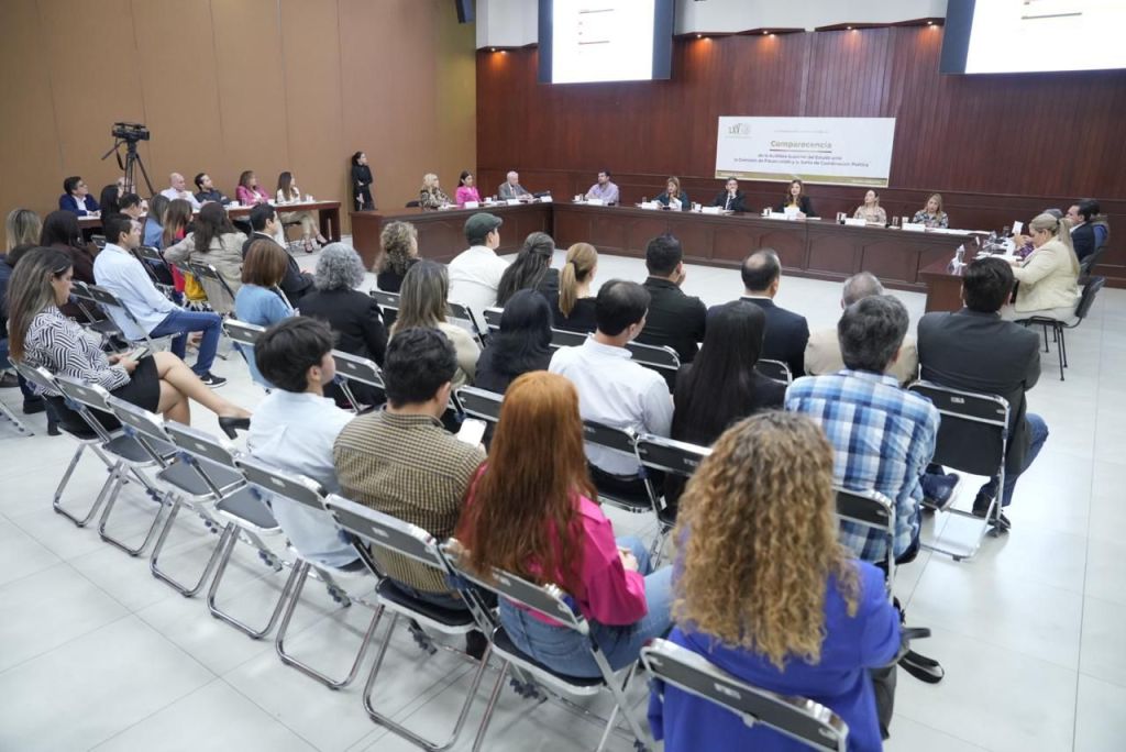 La comparecencia se dio ante diputadas y diputados que integran la Comisión de Fiscalización, así como de la Junta de Coordinación Política que preside la diputada María Teresa Guerra Ochoa, y tuvo lugar en el Salón Constituyentes de 1917.