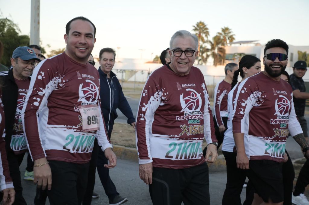 Culiacán, Sinaloa 15 de diciembre de 2024.-* Contribuyendo a fortalecer el bienestar de la sociedad en una ambiente de sana convivencia y espíritu deportivo el Gobernador Rubén Rocha Moya, acompañado del Director del Instituto Sinaloense de Cultura Física y Deporte, Julio César Cascajares, dieron el banderazo de arranque del Primer Medio Maratón ISDE 2024.