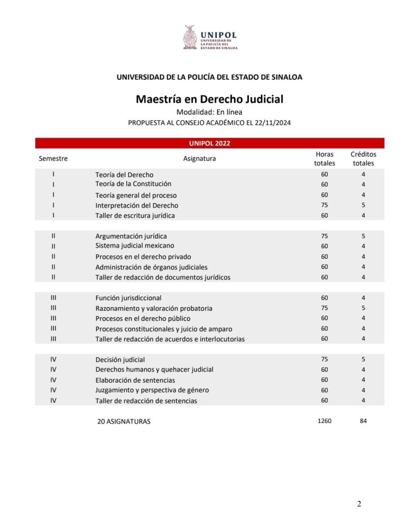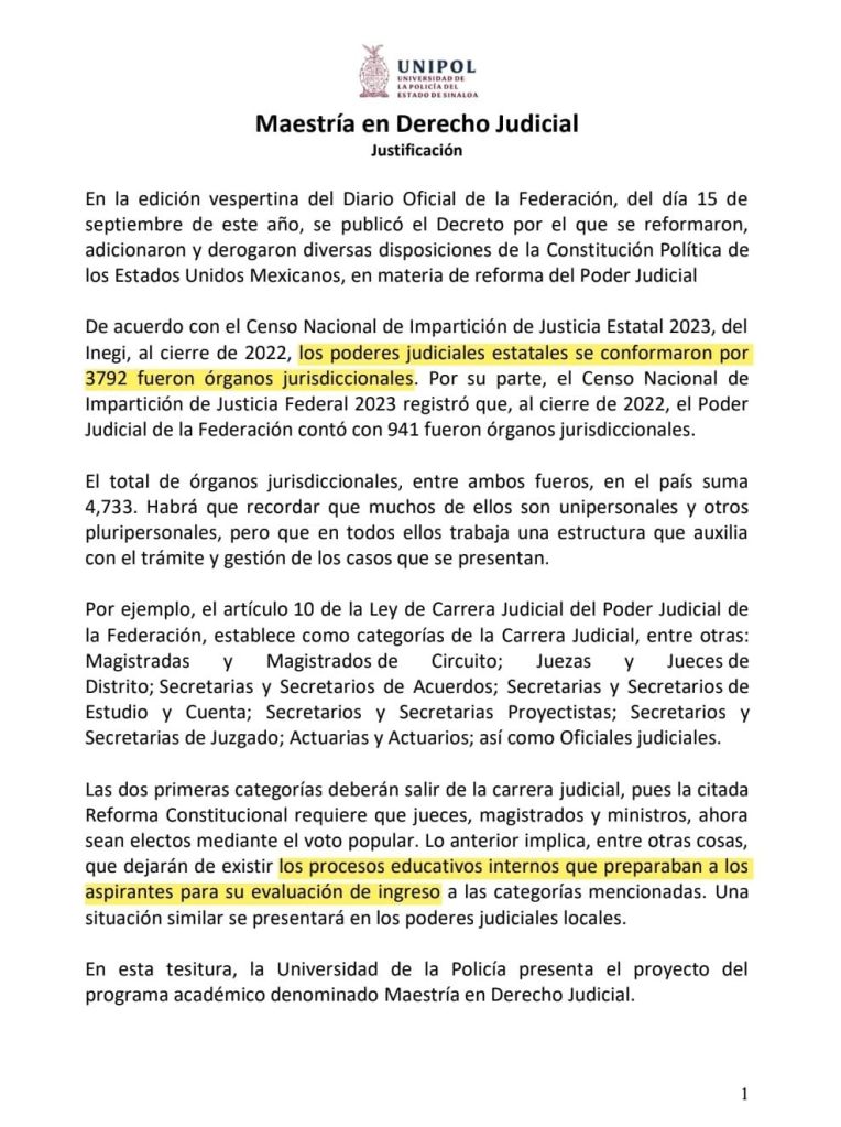 Culiacán, Sinaloa, 21 de Diciembre de 2024.- Luego de las reformas constitucionales y posterior a ello que se diera a conocer ante la opinión pública, que el proceso de selección de los integrantes del Poder Judicial, será el próximo 1 de junio a través del voto popular, la Universidad de la Policía (Unipol), proyecta poner en marcha en el año 2025, la Maestría en Derecho judicial para todas las y los interesados que reúnen el perfil y los conocimientos para buscar ser electos en el proceso antes citado.