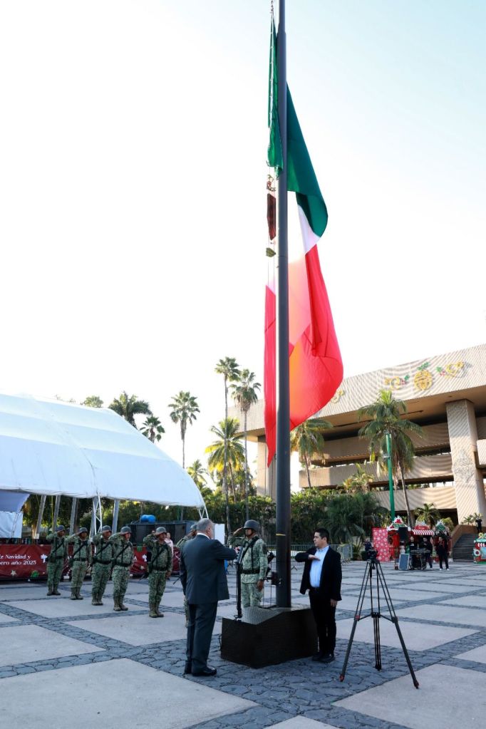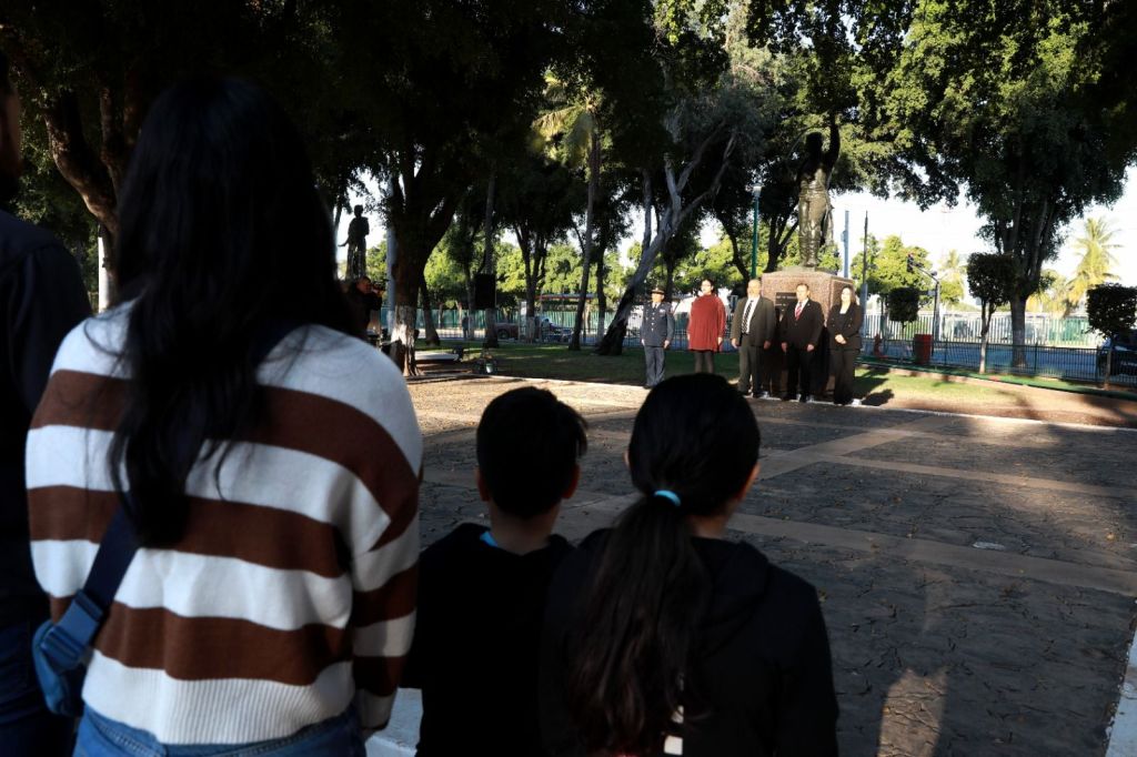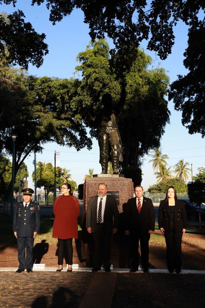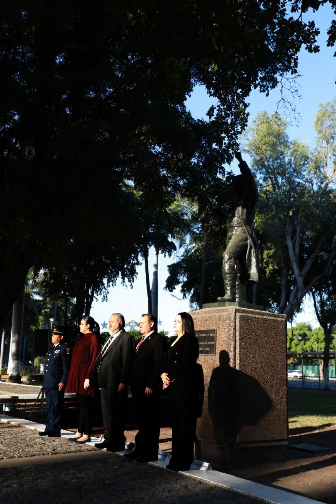Posteriormente, las autoridades, a las que se sumó el Sargento 1ro de la Policía Militar, Gustavo Adolfo Hernández Mendez, en representación de la Guardia Nacional, se trasladaron a la plazuela Álvaro Obregón, a un costado de la Catedral de la capital sinaloense, para montar una guardia de honor en el monumento al Coronel Antonio Rosales, quien acompañado de sus soldados mexicanos derrotó al Ejército Francés en la Batalla de San Pedro en el año de 1864.