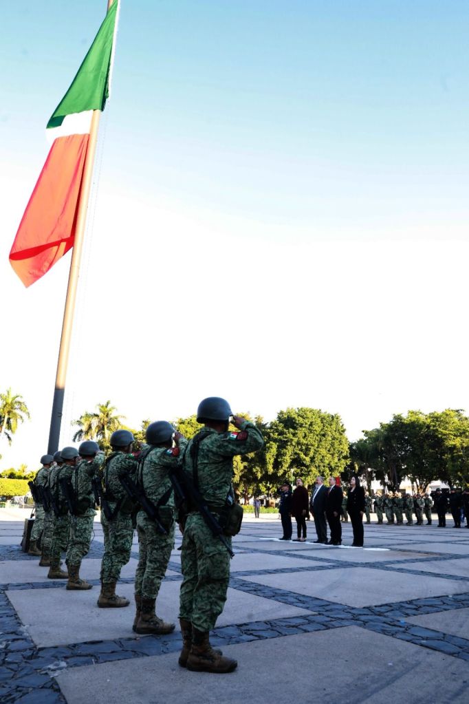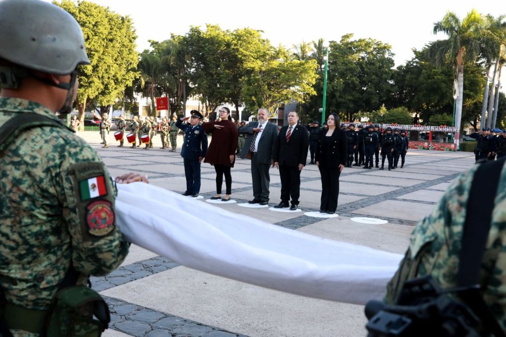 El acto conmemorativo se llevó a cabo en la explanada de Palacio de Gobierno, donde autoridades de los tres órdenes de gobierno, civiles y militares, hicieron honores a la bandera y entonaron el Himno Nacional, para después presenciar el izamiento a toda asta de nuestro lábaro patrio.