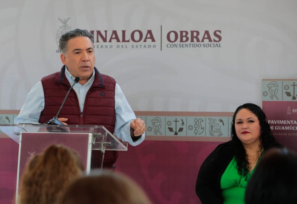 En este segundo día hábil del año, el gobernador Rocha continuó con sus giras de trabajo, y en esta ocasión visitó Guamúchil, donde fue recibido por la presidenta municipal de Salvador Alvarado, Guadalupe López González, para inaugurar la obra del malecón, que consta de cuatro elementos, como es un tramo de 200 metros de una vialidad de cuatro carriles de concreto hidráulico, la pavimentación de otros 228 metros de la avenida Reforma, la construcción de una glorieta en el inicio del malecón, justo en la conexión con la carretera a El Salitre y un puente de 117 metros, todo con una inversión de 57.7 millones de pesos.