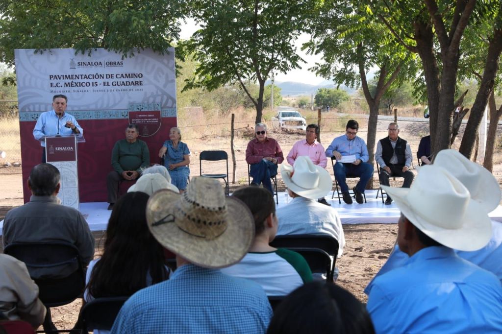 Como en esa ocasión, el mandatario estatal arribó acompañado por el senador de la República, Enrique Inzunza Cázarez, y fueron recibidos en El Guadare por el presidente municipal de Mocorito, Enrique Parra Melesio; y por el secretario de Obras Públicas, Raúl Francisco Montero Zamudio, acompañados también por algunas decenas de habitantes de esta pequeña población.