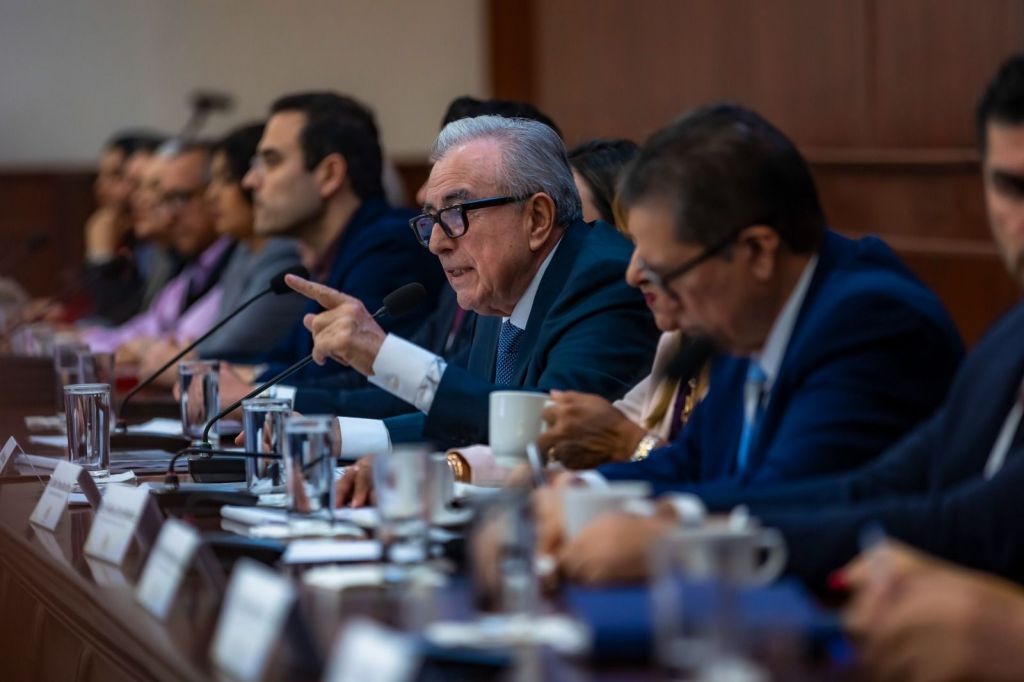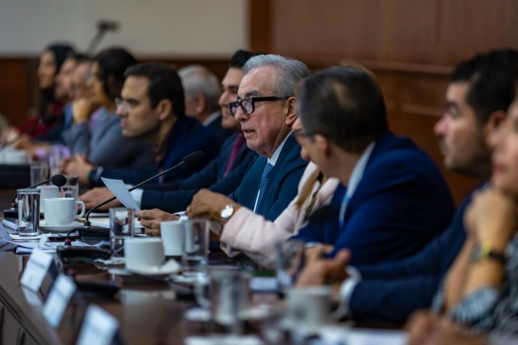 En esta reunión de trabajo, para reforzar el estado de bienestar de todos los sectores productivos y familias sinaloenses, el mandatario estatal estuvo acompañado de todos los secretarios y subsecretarios del gabinete estatal, los alcaldes de los 20 municipios, senadores, diputados locales y presidentes de las cámaras empresariales del estado.