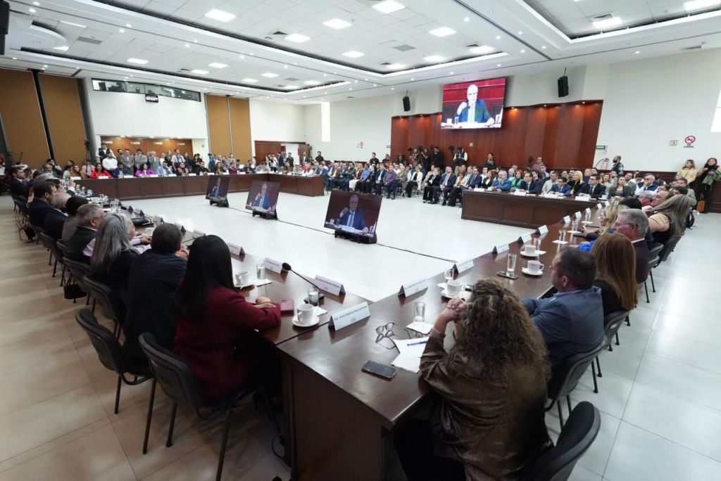 Culiacán, Sinaloa. A 8 de enero de 2025.- El Congreso del Estado de Sinaloa recibió este miércoles al gobernador Rubén Rocha Moya en la Mesa de Trabajo: Plan de Reactivación Económica, en la que planteó ante la 65 Legislatura una iniciativa de solicitud de crédito por 2 mil 300 millones de pesos.