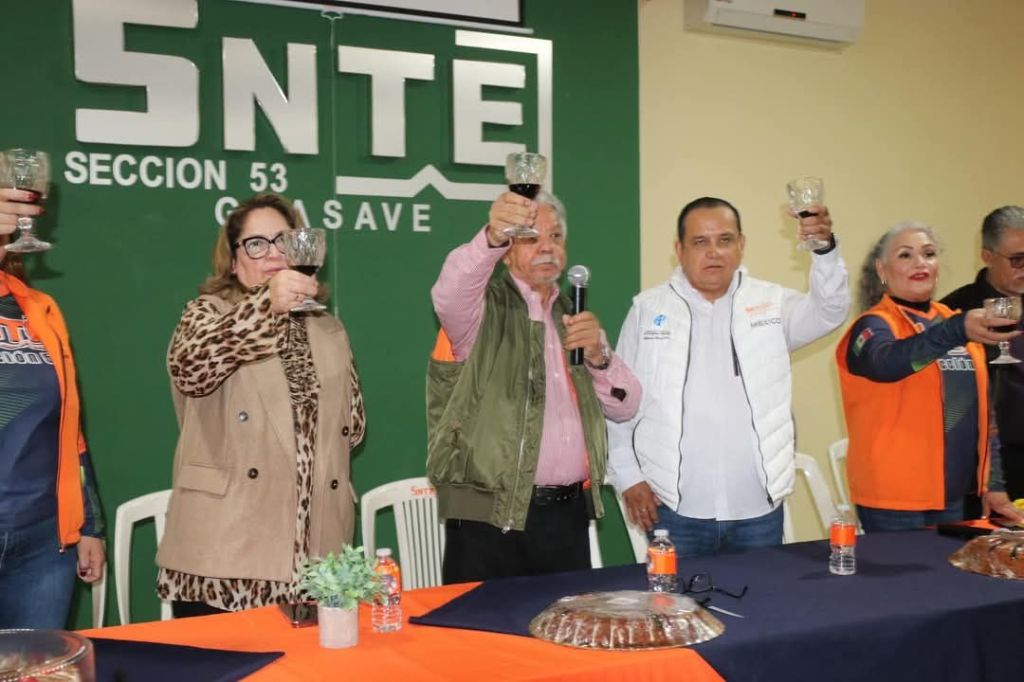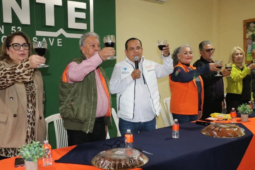 Durante el brindis de inicio de año, el líder sindical agradeció la asistencia del Prof. Óscar Beltrán Ruiz, ex Secretario General, deseando a los presentes que este 2025 sea un año de amor, esperanza y unión familiar.