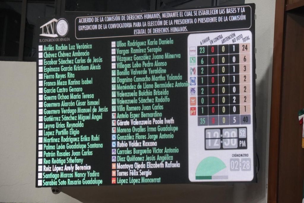 Culiacán, Sinaloa. A 9 de enero de 2025.- El Congreso del Estado de Sinaloa aprobó este jueves, con 35 votos a favor, el Acuerdo que establece la convocatoria para elegir a la nueva persona titular de la Comisión Estatal de Derechos Humanos (CEDH).