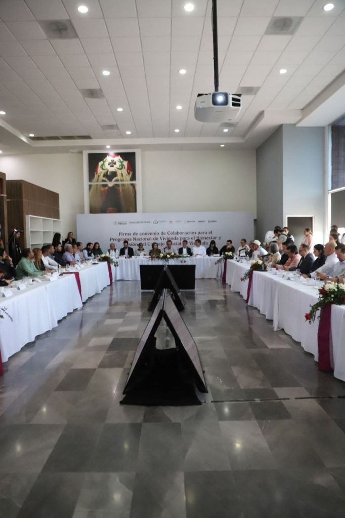 Guasave, Sinaloa 15 de enero de 2025.- A fin de asegurar el derecho humano a una vivienda digna que garantice seguridad, estabilidad y la posibilidad de construir un mejor futuro. El Secretario General de Gobierno, Feliciano Castro Meléndrez, en representación del Gobernador, Rubén Rocha Moya, acompañado de la Alcaldesa de Guasave, Cecilia Ramírez Montoya y María Inés Pérez Corral, Secretaria de Bienestar y Desarrollo Sustentable, atestiguaron la firma del convenio de colaboración con Ayuntamientos y el INSUS, para implementar en Sinaloa el Programa Nacional de Vivienda para el Bienestar, mediante el cual se construirán 29 mil viviendas nuevas, así como la emisión de 12 mil 400 escrituras, con apoyo de SEDATU e Infonavit.