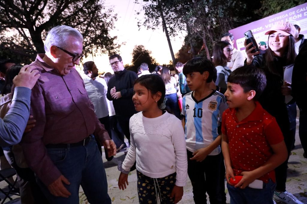 Por su parte, María del Carmen Morales, Secretaria de Obras y Servicios Públicos Municipal detalló que, se aplicó pavimento hidráulico de 15 cm de espesor sobre la calle Velina León de Medina, entre avenida Álvaro Obregón y Blvd. Enrique Sánchez Alonso, cubriendo 709.64 metros lineales para contar con mejor vialidad, además de guarniciones, banquetas y servicios, pues se rehabilitó la red de agua potable con 94 tomas domiciliarias y drenaje sanitario con 17 pozos de visita y 90 registros sanitarios, así como, alumbrado público con 24 luminarias tipo LED con su respectivo murete de medición.