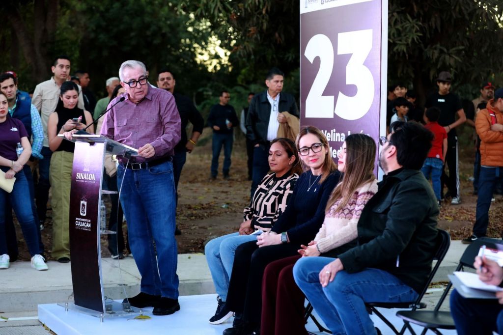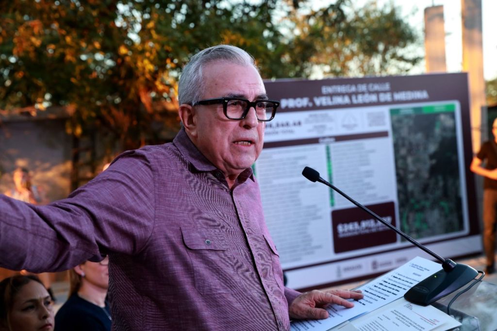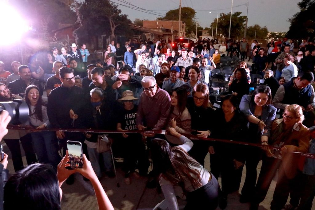 Culiacán, Sinaloa 18 de enero de 2025.-* Continuando con la entrega de obras con amplio beneficio social, que potencian el desarrollo económico de los comercios de la zona, contribuyan a la movilidad y al mejoramiento del entorno urbano, el Gobernador Rubén Rocha Moya acompañado del alcalde de Culiacán, Juan de Dios Gámez, y la Secretaria de Obras y Servicios Públicos Municipal María del Carmen Morales, inauguraron la pavimentación de la calle Velina León de Medina, en la colonia Las Cucas, calle que permitirá conectar la avenida Álvaro Obregón con el Blvd. Sánchez Alonso, haciendo un par vial que desfogará el tráfico en la zona norponiente de la ciudad.