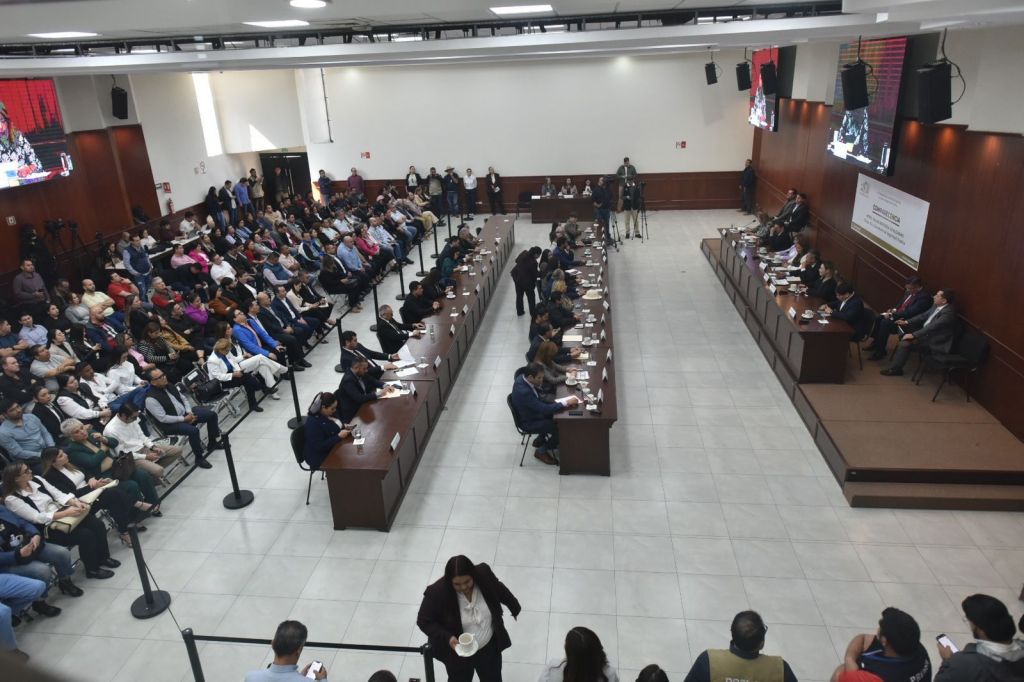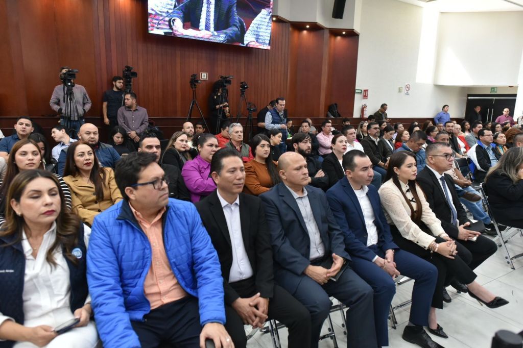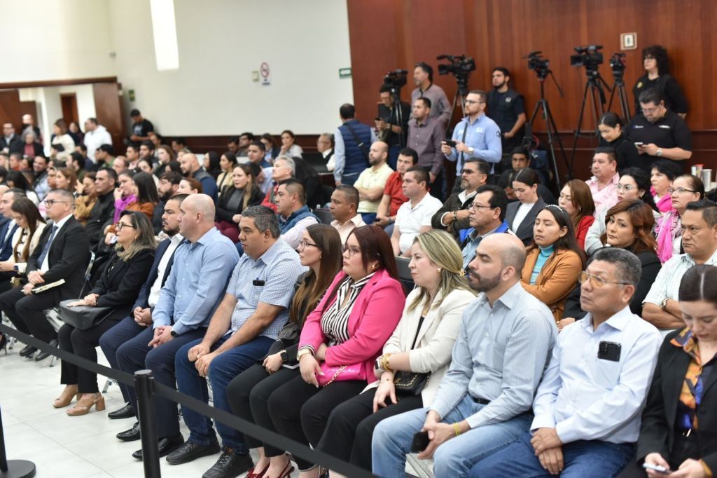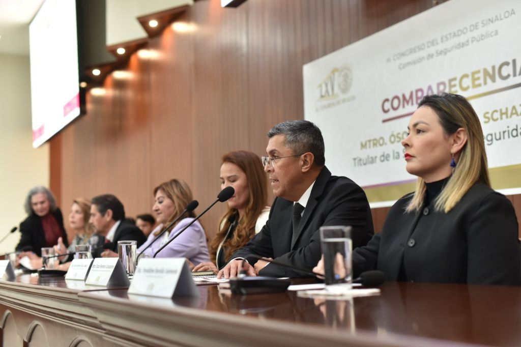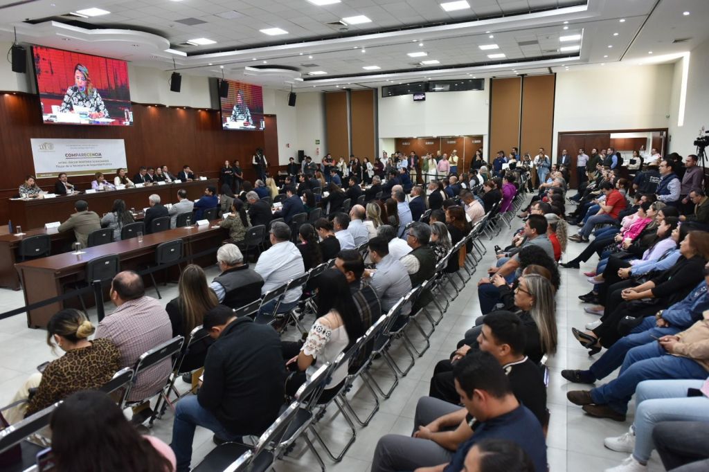 La comparecencia fue encabezada por las diputadas María Teresa Guerra Ochoa, Yeraldine Bonilla Valverde, presidentas de la Junta de Coordinación Política y de la Mesa Directiva del Congreso del Estado, y fue moderada por la presidenta de la Comisión de Seguridad Pública, Arely Berenice Ruiz López.