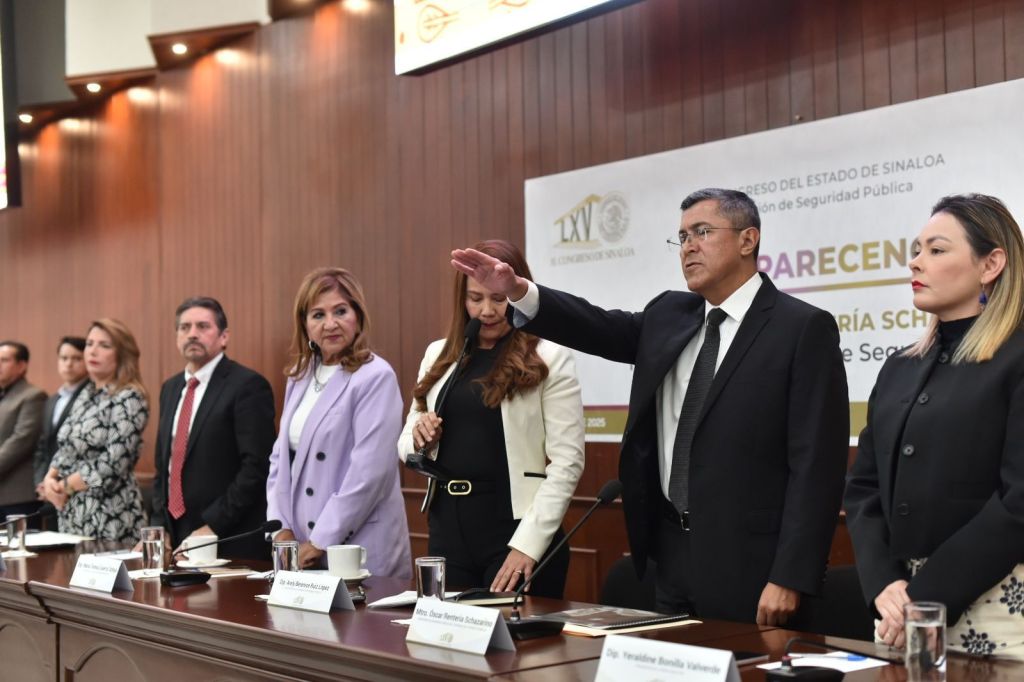 Culiacán, Sinaloa. A 22 de enero de 2025.- Sinaloa requiere de esfuerzos coordinados para enfrentar la inseguridad pública, y el Congreso del Estado seguirá mejorando el marco normativo para tener mejores resultados, se comprometieron diputadas y diputados de las distintas fuerzas políticas ante el titular de la Secretaría de Seguridad Pública, Óscar Rentería Schazarino.