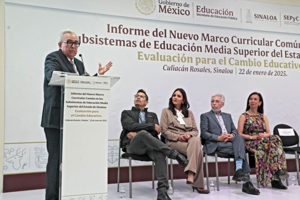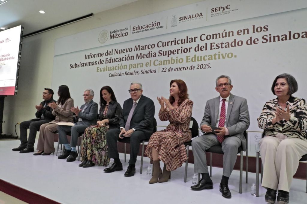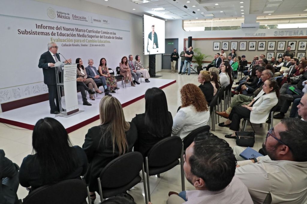 Culiacán, Sinaloa 22 de enero de 2025.- Buscando fortalecer los mecanismos de aprendizaje, conocimientos y experiencias que permitirán a los egresados incorporarse a sus estudios universitarios o al empleo, así como, permitir la movilidad de los estudiantes entre los 32 subsistemas educativos que integran el bachillerato en México, el Gobernador Rubén Rocha, acompañado de la Secretaria de Educación Gloria Himelda Félix Niebla y Tania Rodríguez Mora subsecretaria de Educación Media Superior federal, sostuvieron un encuentro con directores de los planteles de estos subsistemas en la entidad, a fin de presentar avances en la implementación del nuevo marco curricular común en los sistemas de educación media en el Estado de Sinaloa.