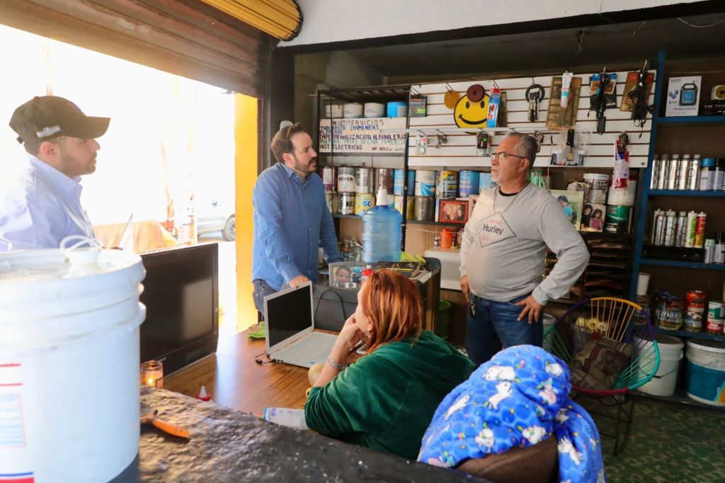 Durante su recorrido, el secretario escuchó las inquietudes de los empresarios y, por instrucción del gobernador Rubén Rocha Moya, anunció la disponibilidad de créditos con tasas preferenciales, un periodo de gracia de seis meses y apoyos para surtir mercancía y reactivar sus actividades económicas.