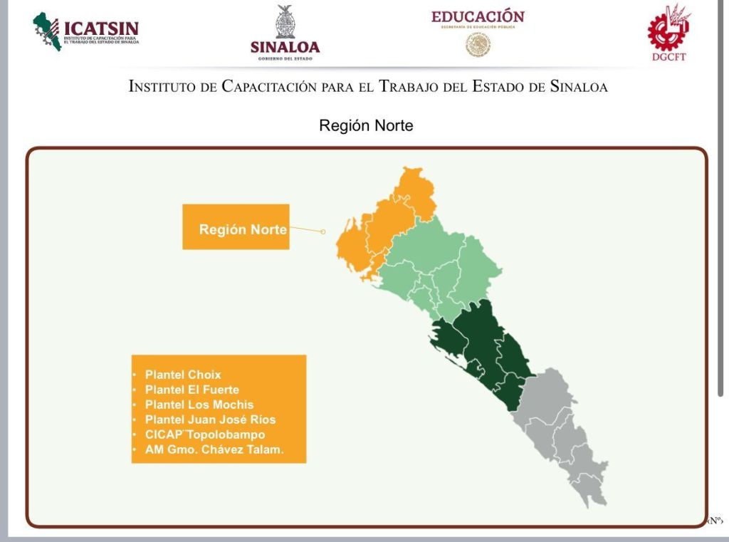 Zona Centro Norte, los planteles de Guasave, Sinaloa, Angostura, Salvador Alvarado, Mocorito y las Acciones Móviles Estación Naranjo y Badiraguato.
