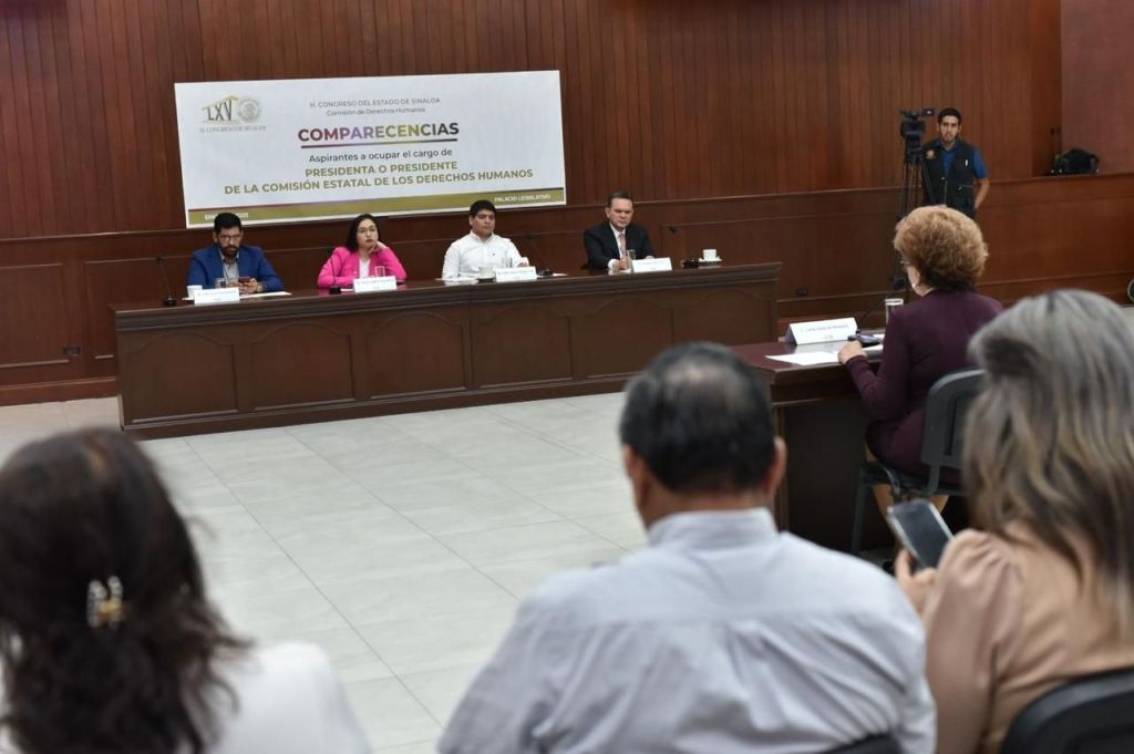 La Comisión de Derechos Humanos del Congreso del Estado de Sinaloa llevó a cabo este martes las primeras cuatro de ocho comparecencias de aspirantes a ocupar la presidencia de la Comisión Estatal de Derechos Humanos, conforme a lo establecido en convocatoria.