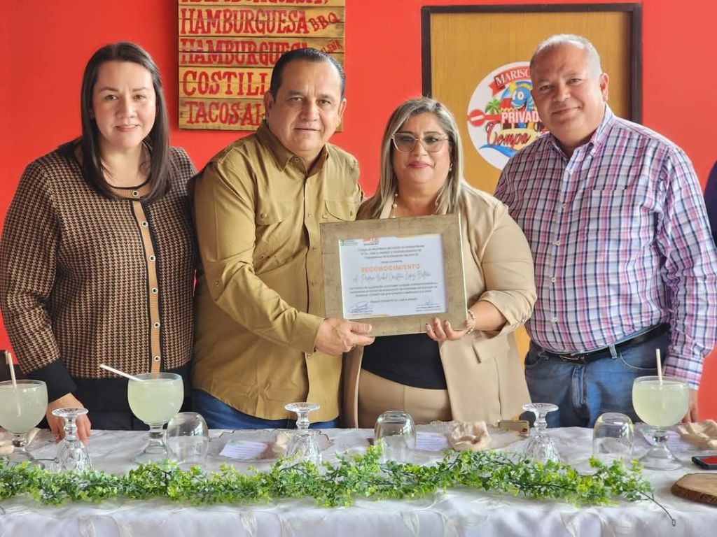 El Secretario General Prof. Ricardo Madrid Uriarte junto a la distinguida presencia del Presidente municipal de Sinaloa Dr. Rolando Mercado, acompañaron a la Profa. Isabel Cristina López Beltrán en un merecido reconocimiento de jubilación, por sus 32 años de servicio educando a cientos de jóvenes en el plantel 15 «Lic. José G. Herrera» de Colegio de Bachilleres del Estado de Sinaloa.